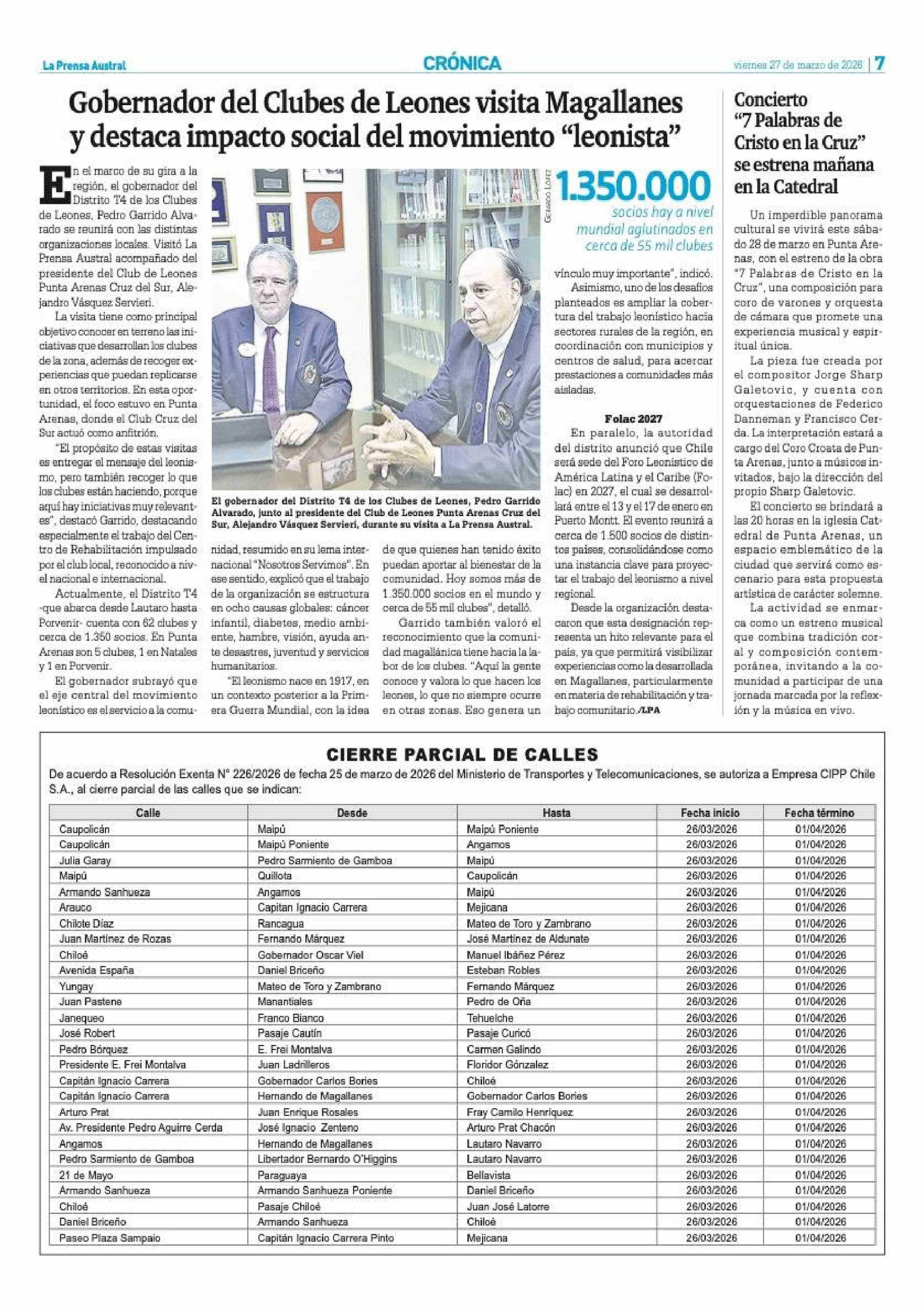 Título: Gobernador del Clubes de Leones visita Magallanes y destaca impacto social del movimiento "leonista"