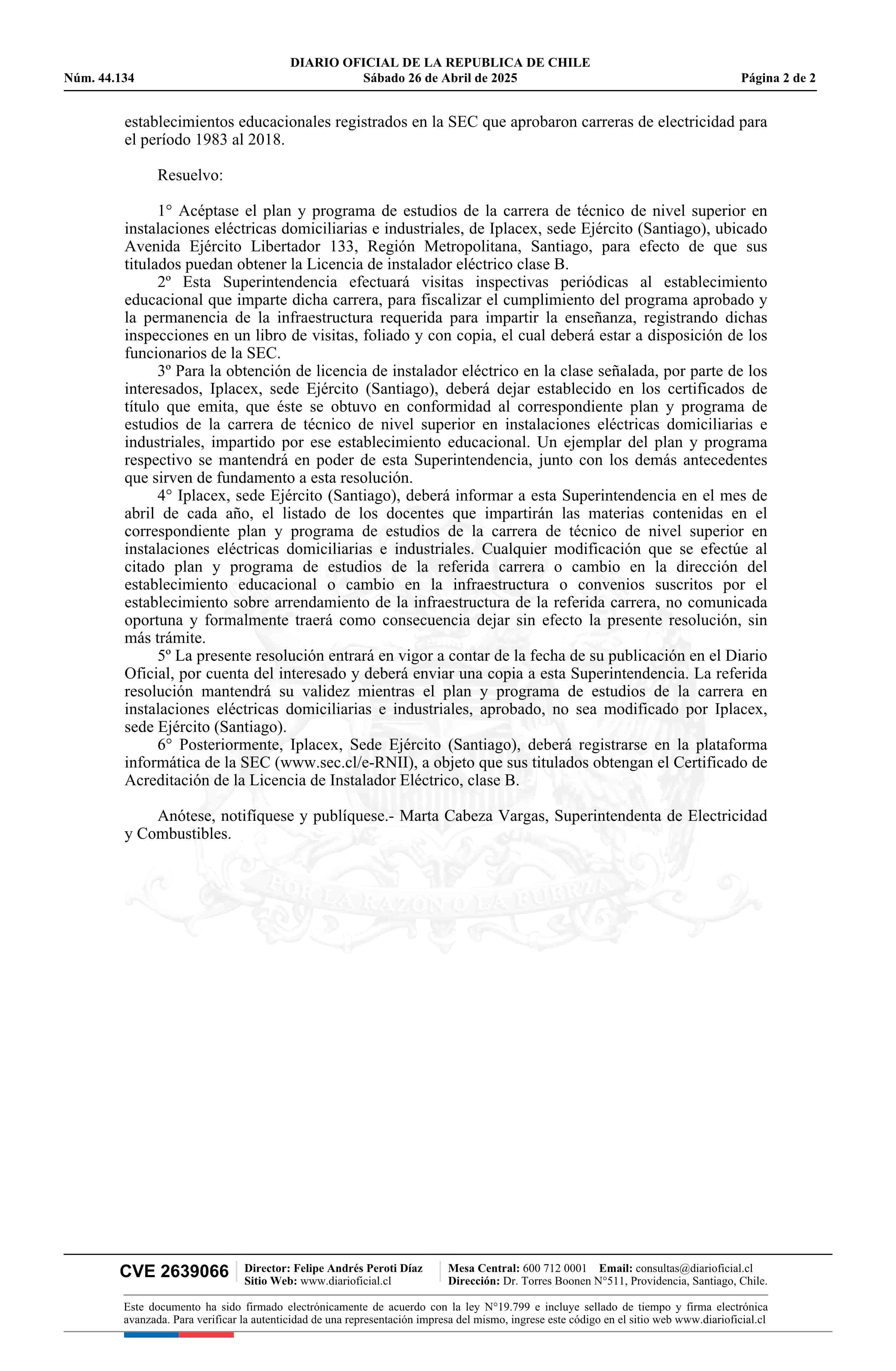 | Título: | Resolución exenta número 31.477, de 2025.- Aprueba plan y programa de estudios de la carrera de Técnico de nivel superior en instalaciones eléctricas domiciliarias e industriales del Instituto Profesional Latinoamericano de Comercio Exterior, sede Ejército, Santiago |