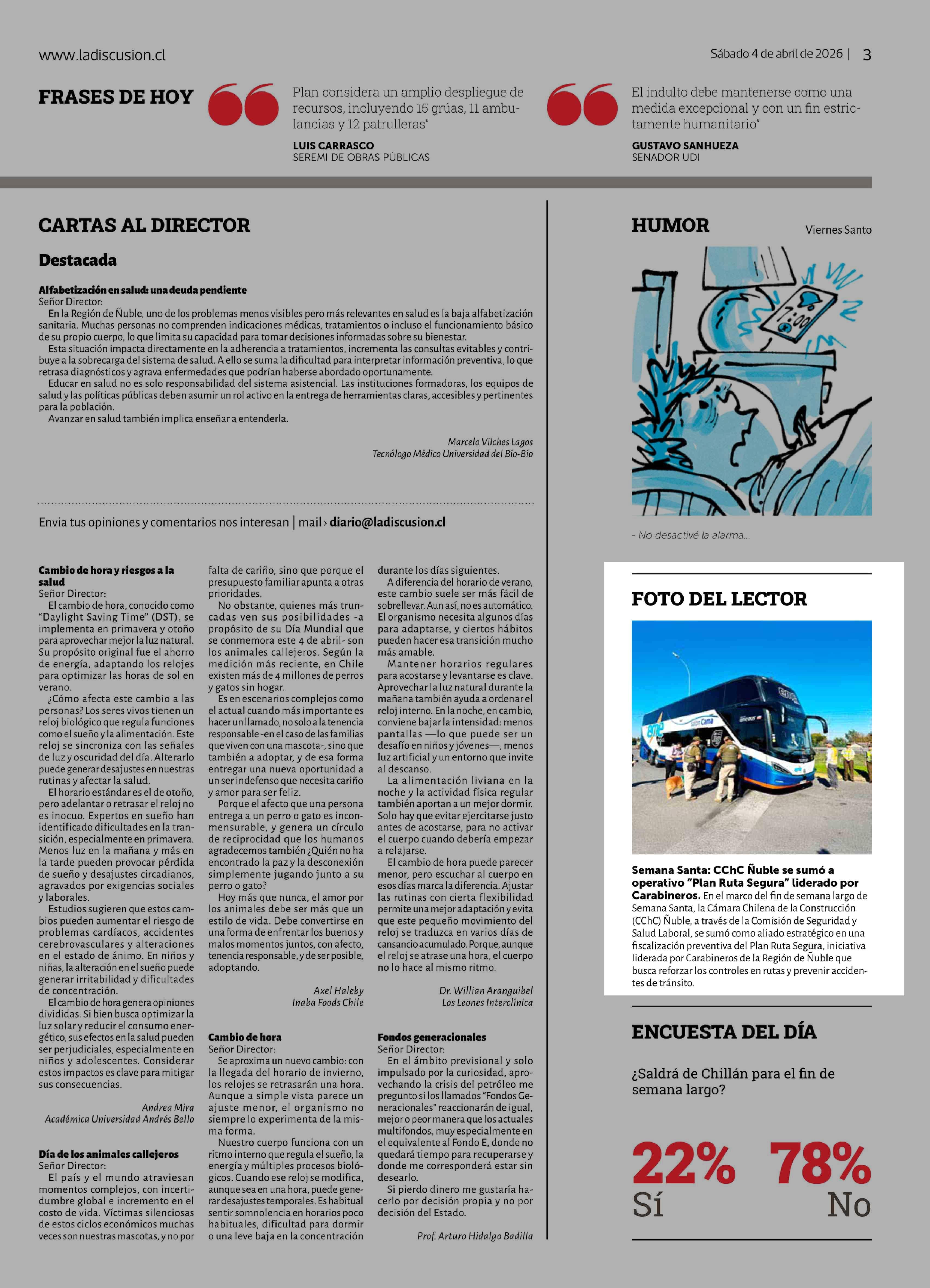 Fecha: 04-04-2026 Sector: Noticia general Región: Región del Ñuble