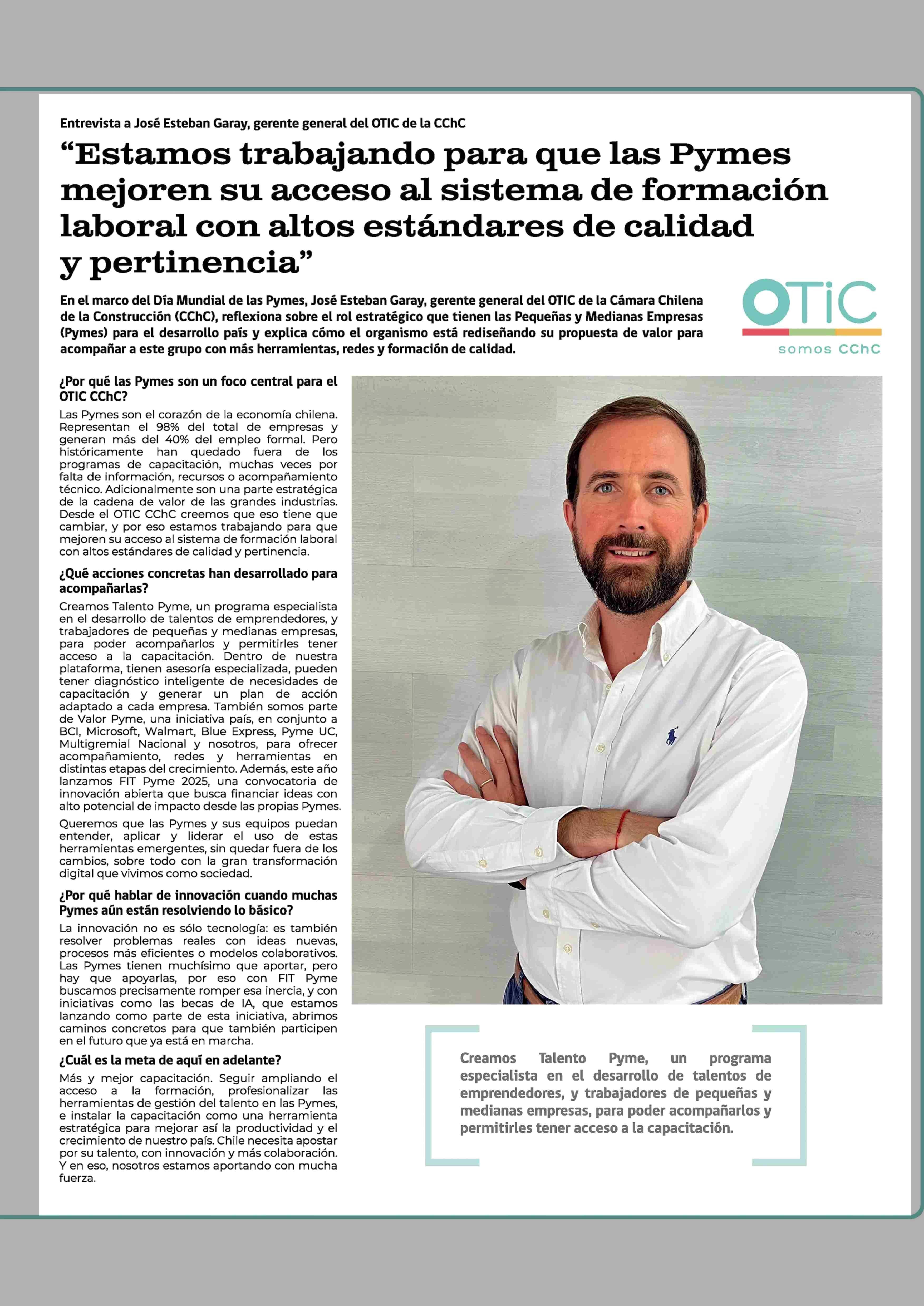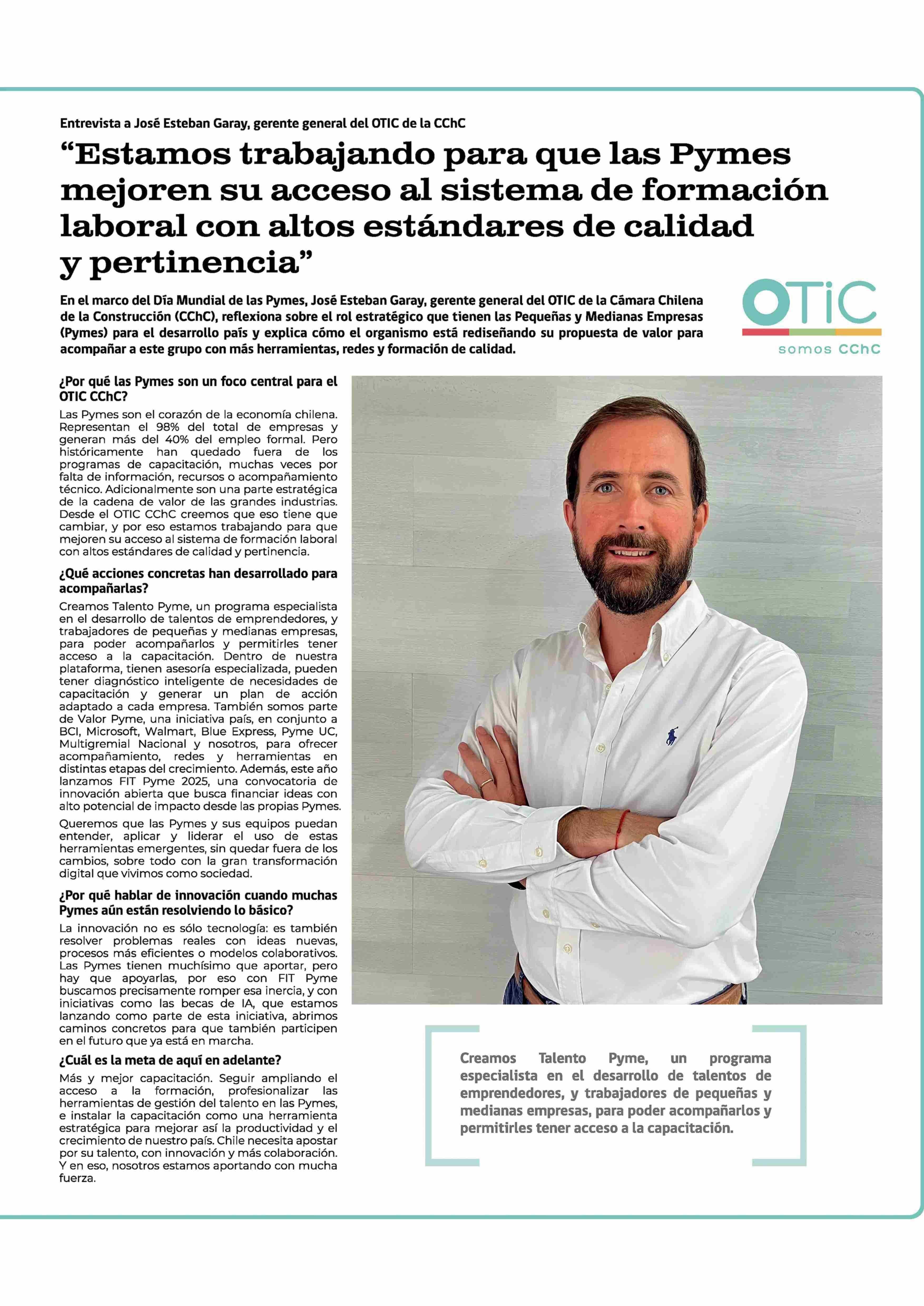 Título: “Estamos trabajando para que las Pymes mejoren su acceso al sistema de formación laboral con altos estándares de calidad y pertinencia”
