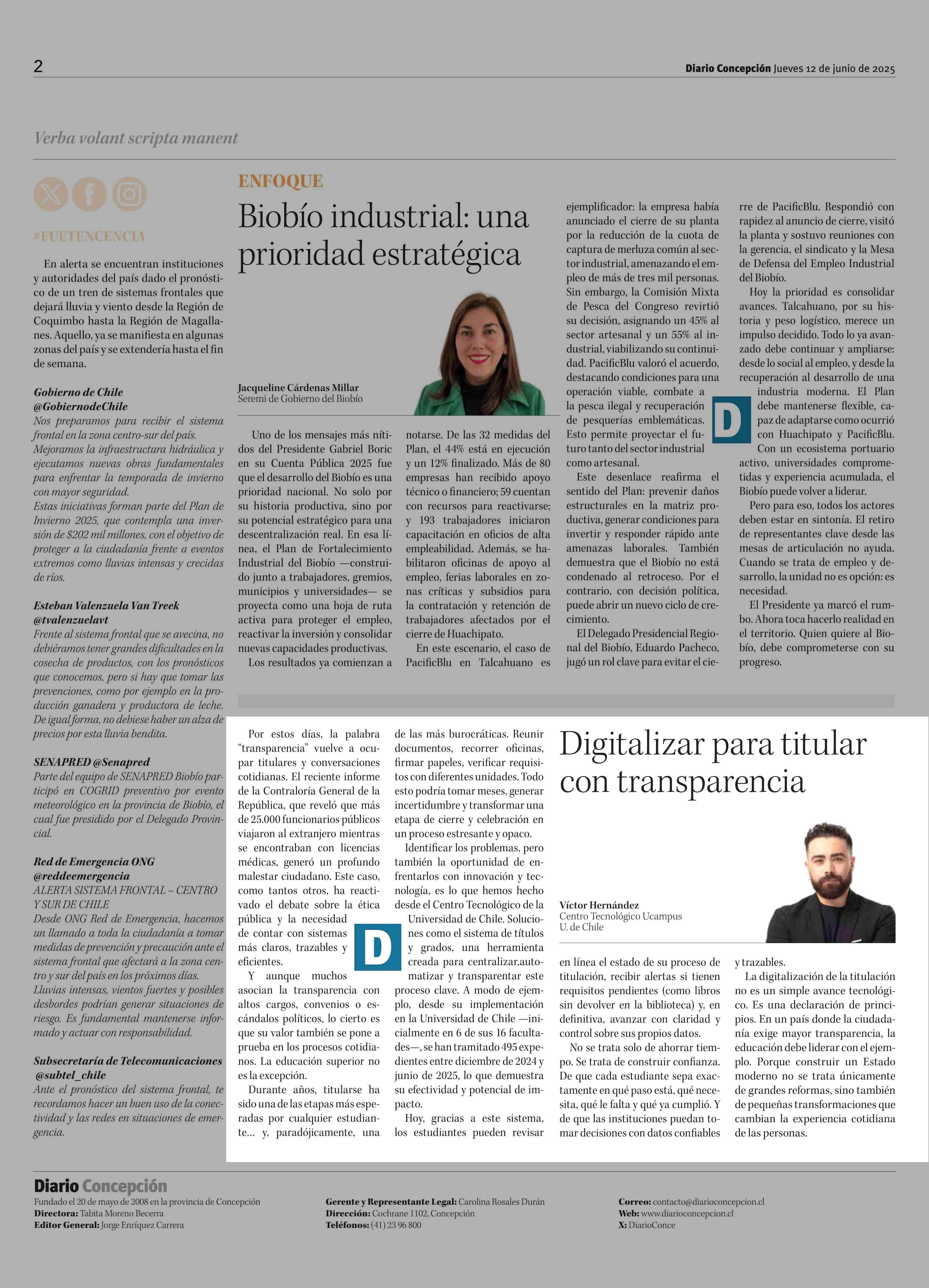 COLUMNAS DE OPINIÓN: Digitalizar para titular con transparencia 12-06-2025 Diario Concepción |