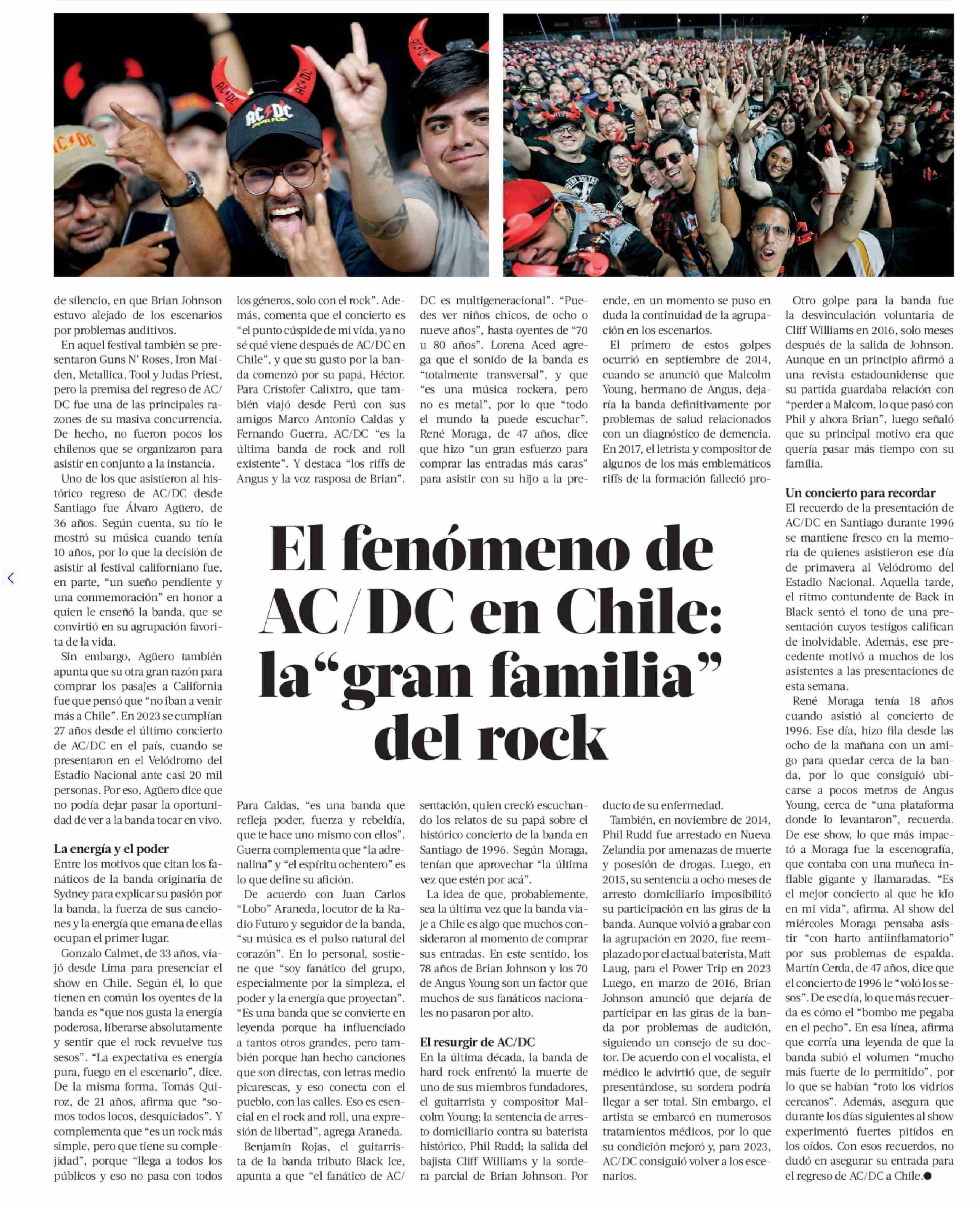El fenómeno de AC/DC en Chile: la"gran familia" del rock 14-03-2026 La Tercera |