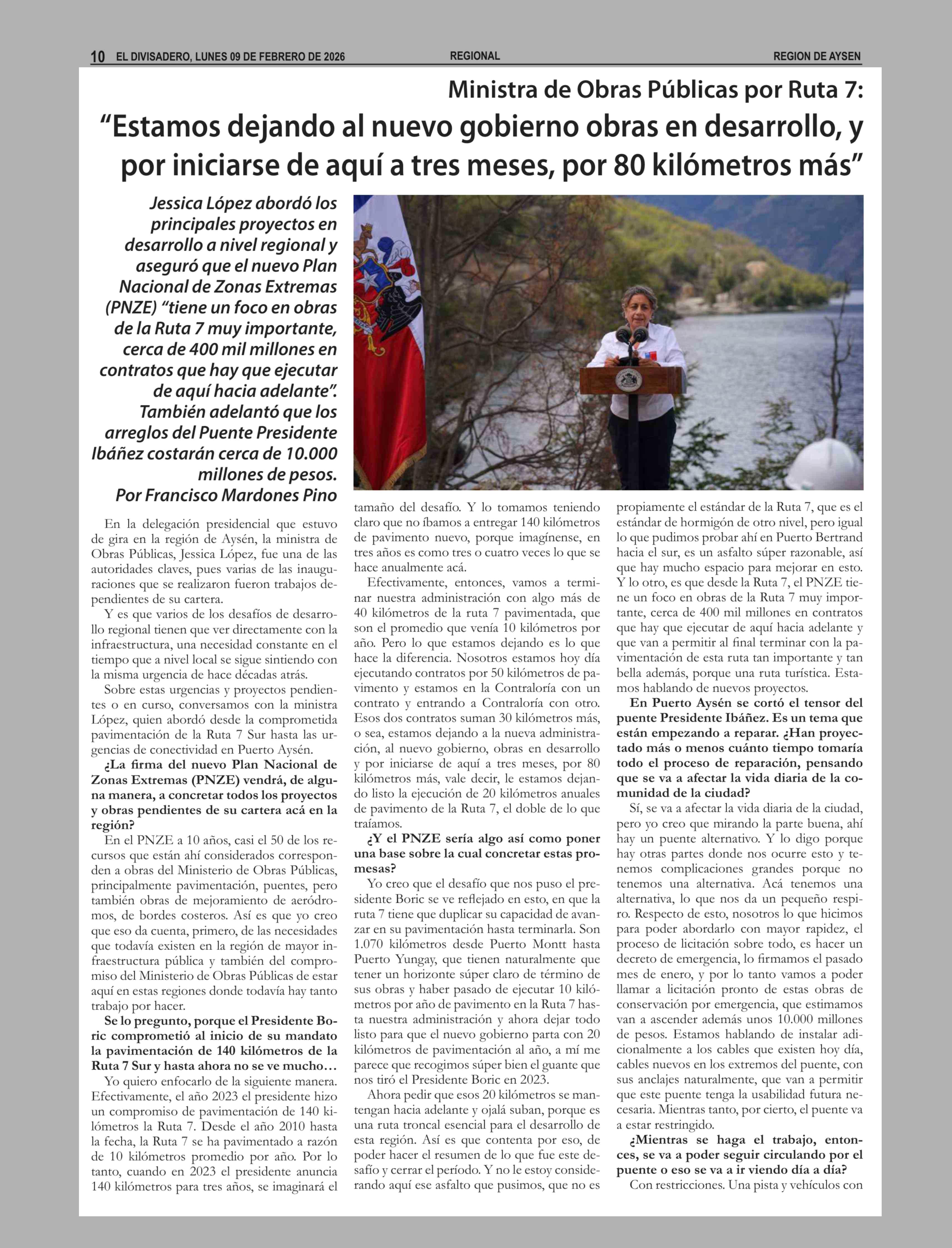 "Estamos dejando al nuevo gobierno obras en desarrollo, y por iniciarse de aquí a tres meses, por 80 kilómetros más" 09-02-2026 El Divisadero |