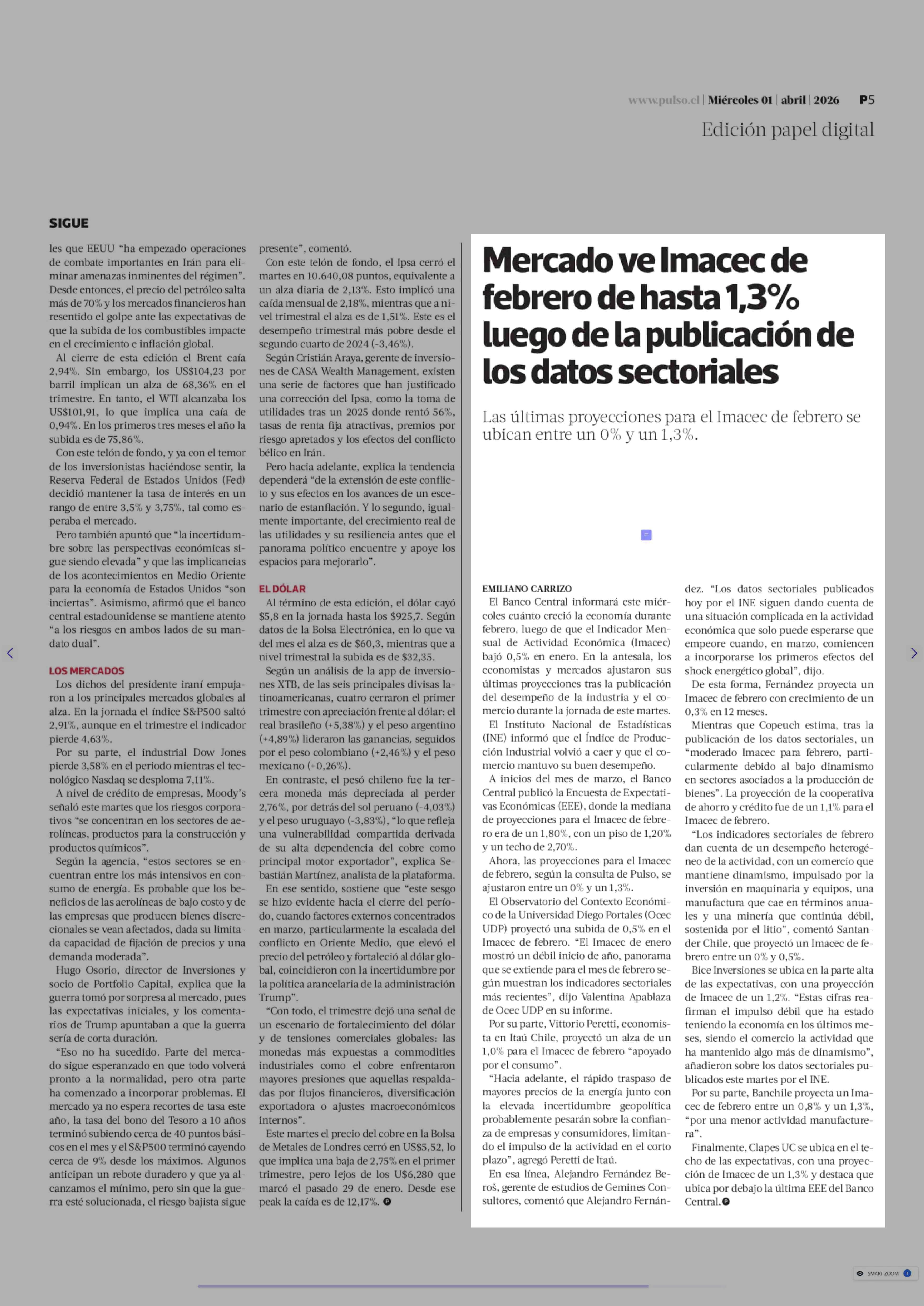 Título: Mercado ve Imacec de febrero de hasta 1,3% luego de la publicación de los datos sectoriales