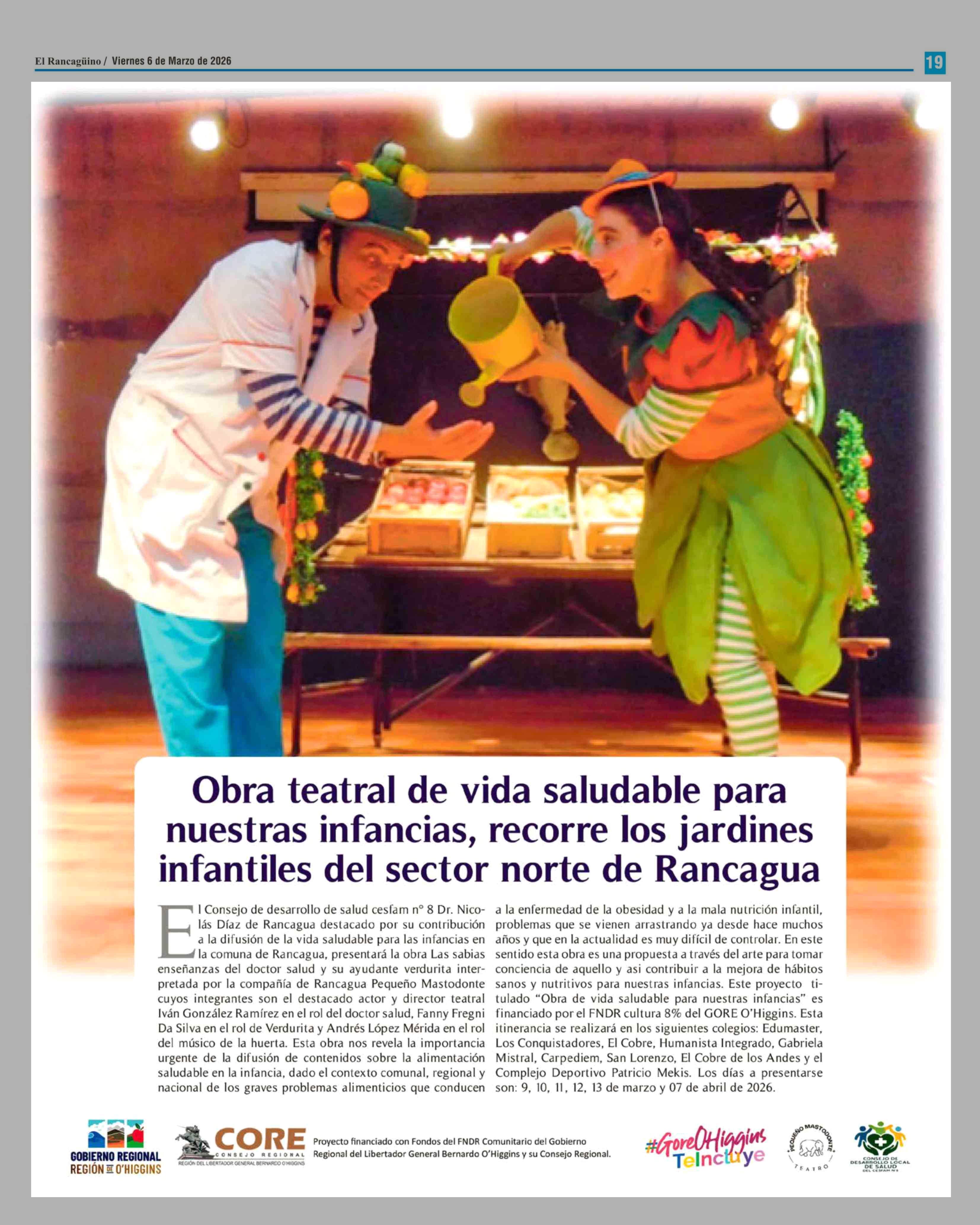Obra teatral de vida saludable para nuestras infancias, recorre los jardines infantiles del sector norte de Rancagua 06-03-2026 El Rancagüino |