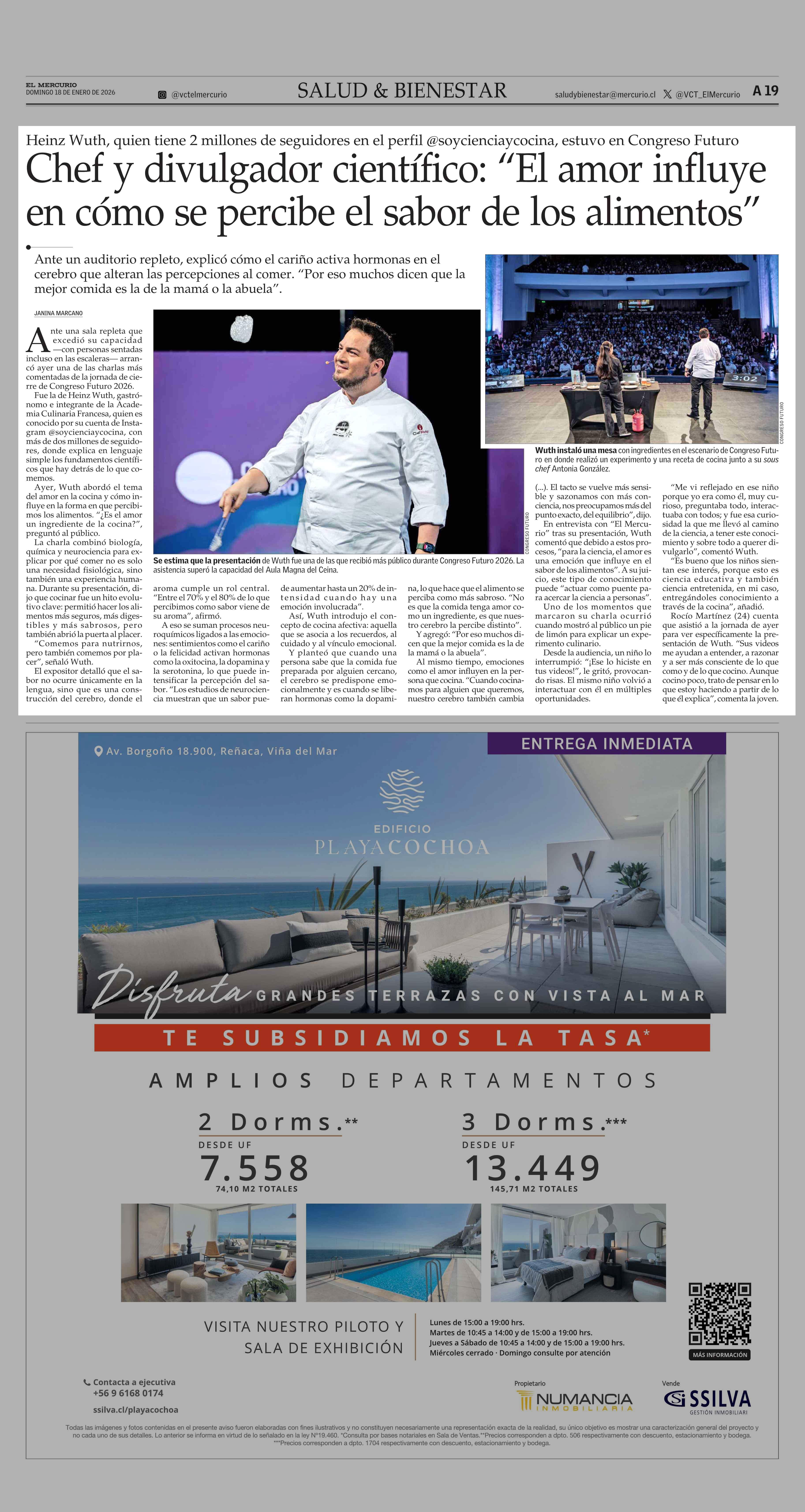 Chef y divulgador científico: “El amor influye en cómo se percibe el sabor de los alimentos” 18-01-2026 El Mercurio |