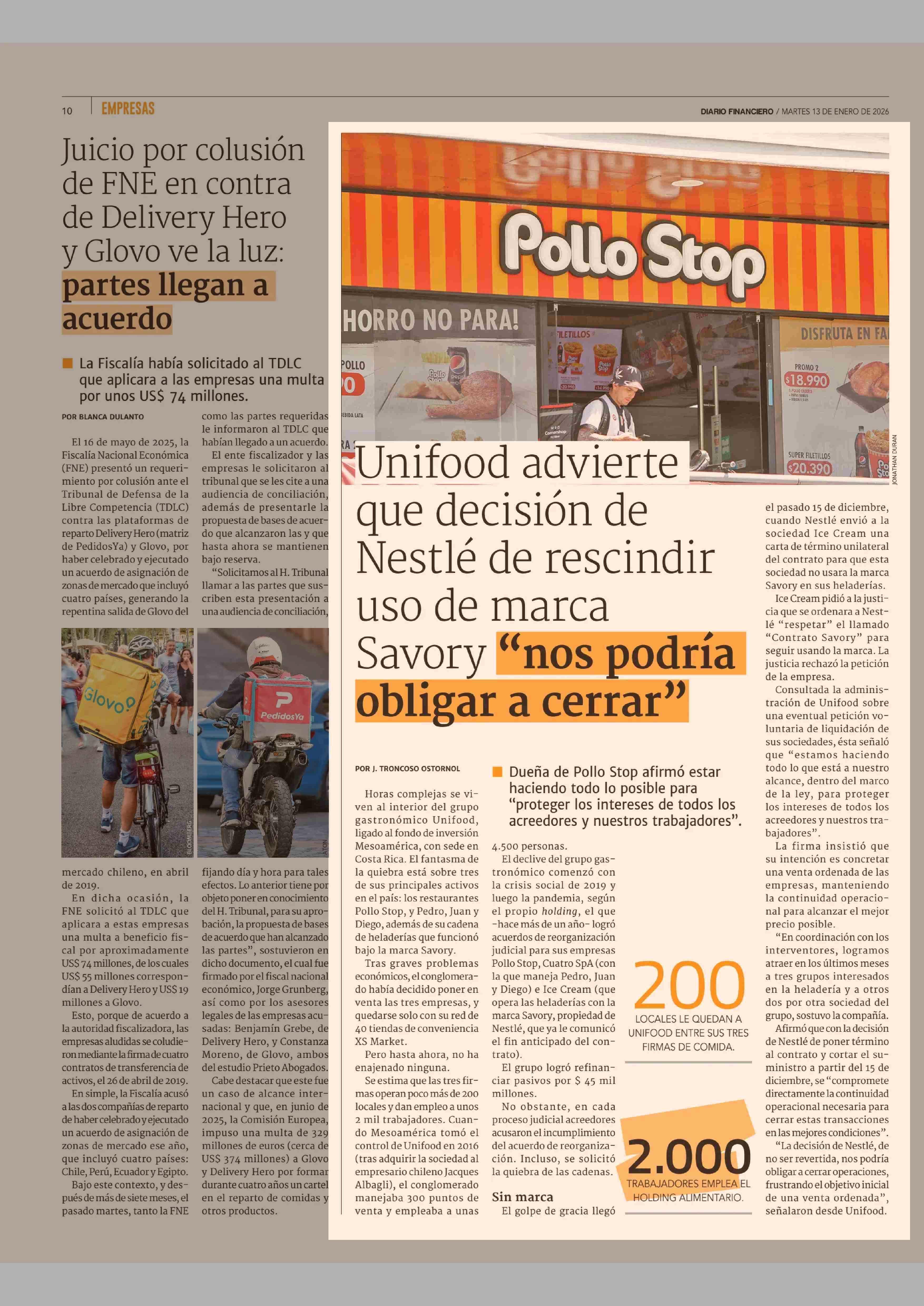 Título: Unifood advierte que decisión de Nestlé de rescindir uso de marca Savory "nos podría obligar a cerrar"