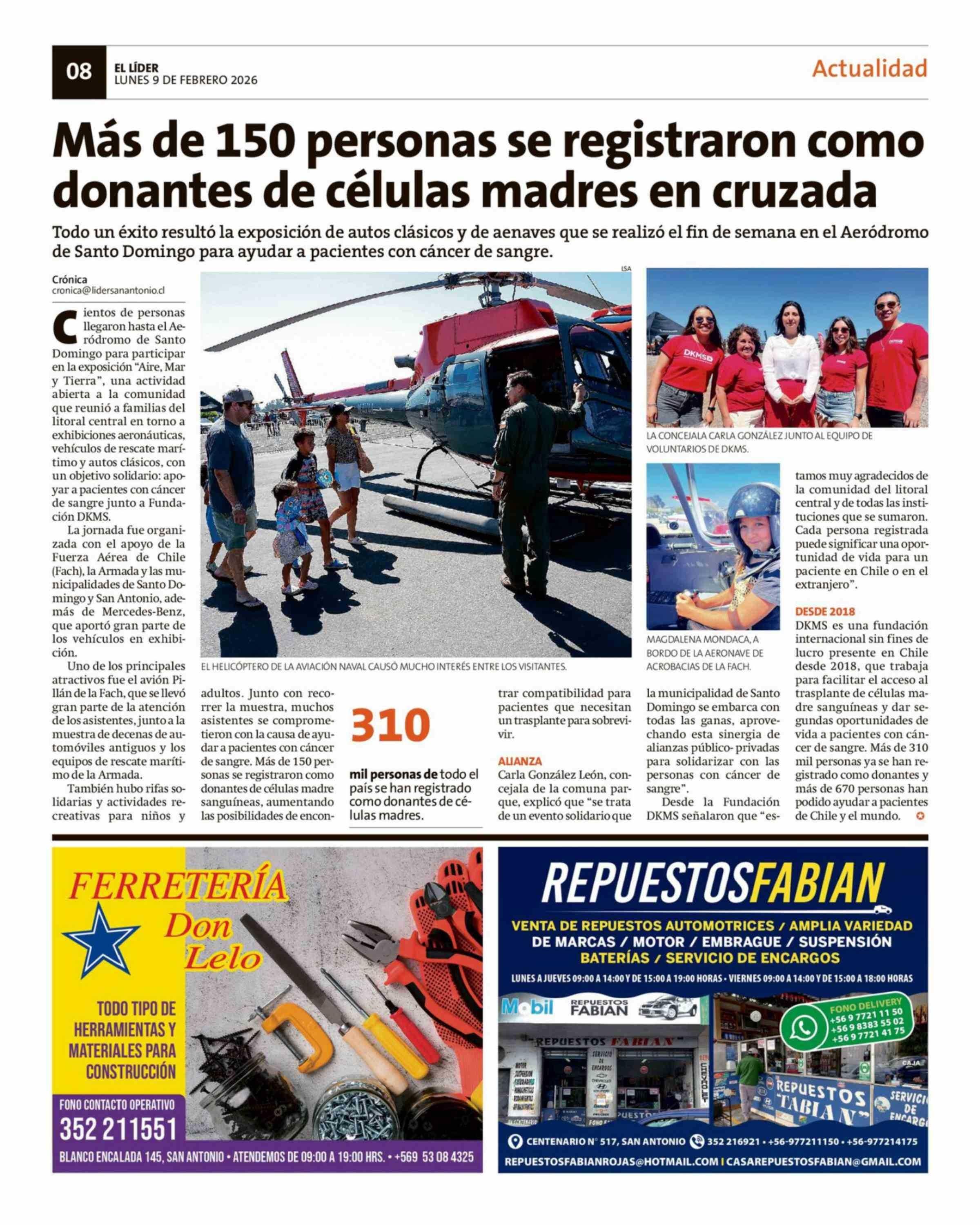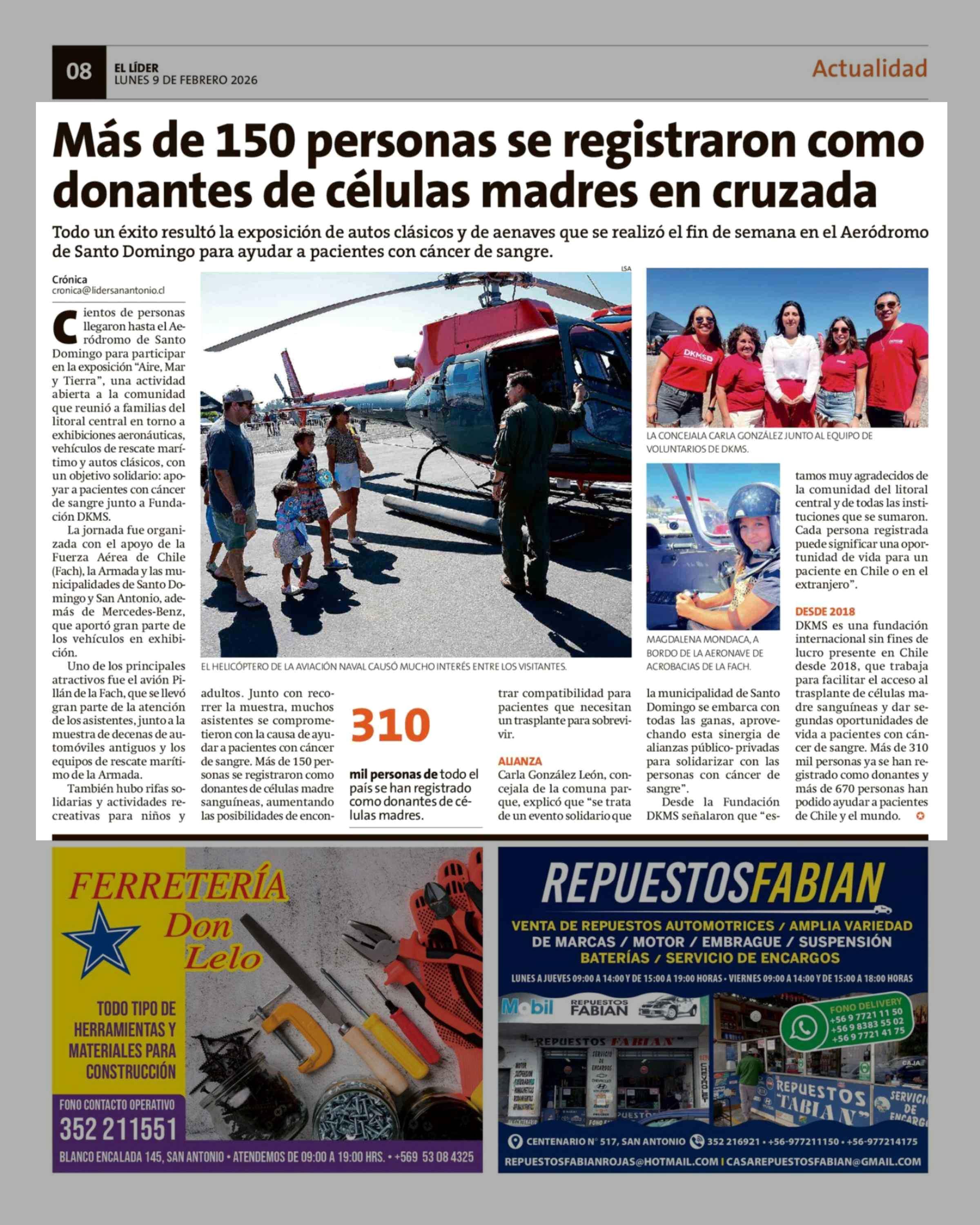 Título: Más de 150 personas se registraron como donantes de células madres en cruzada