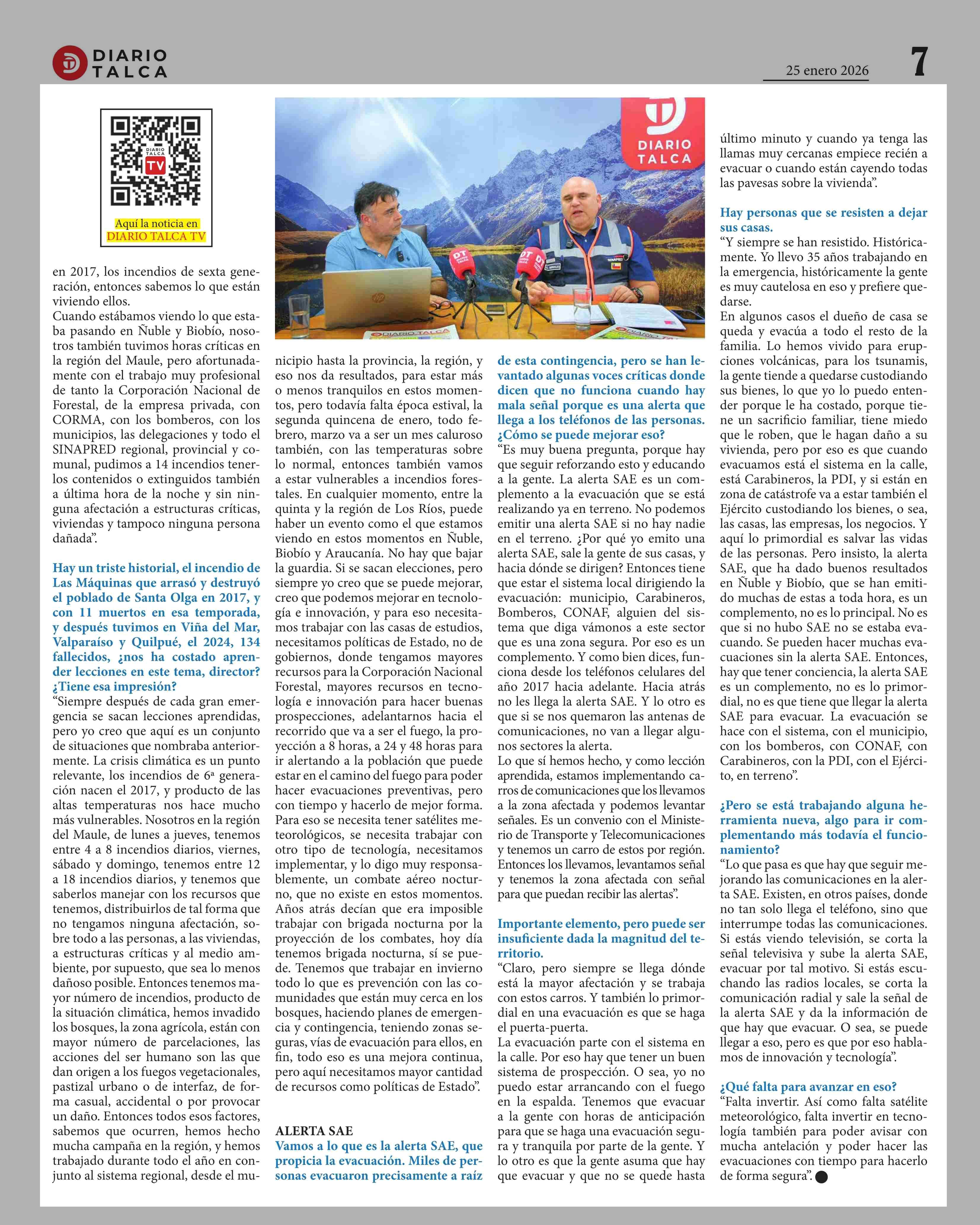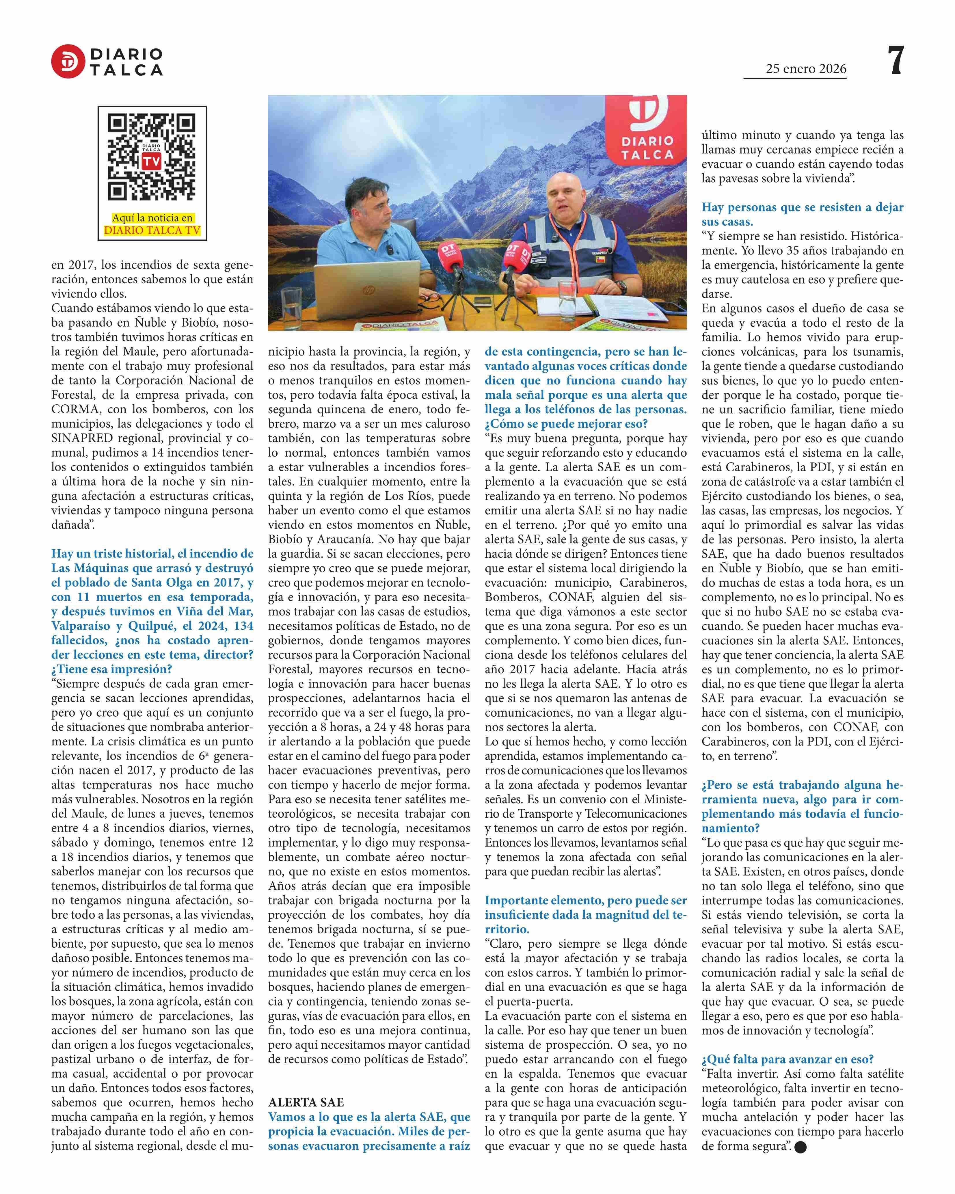 Título: "Nuestra región del Maule es mucho más vulnerable a los embates de los incendios"