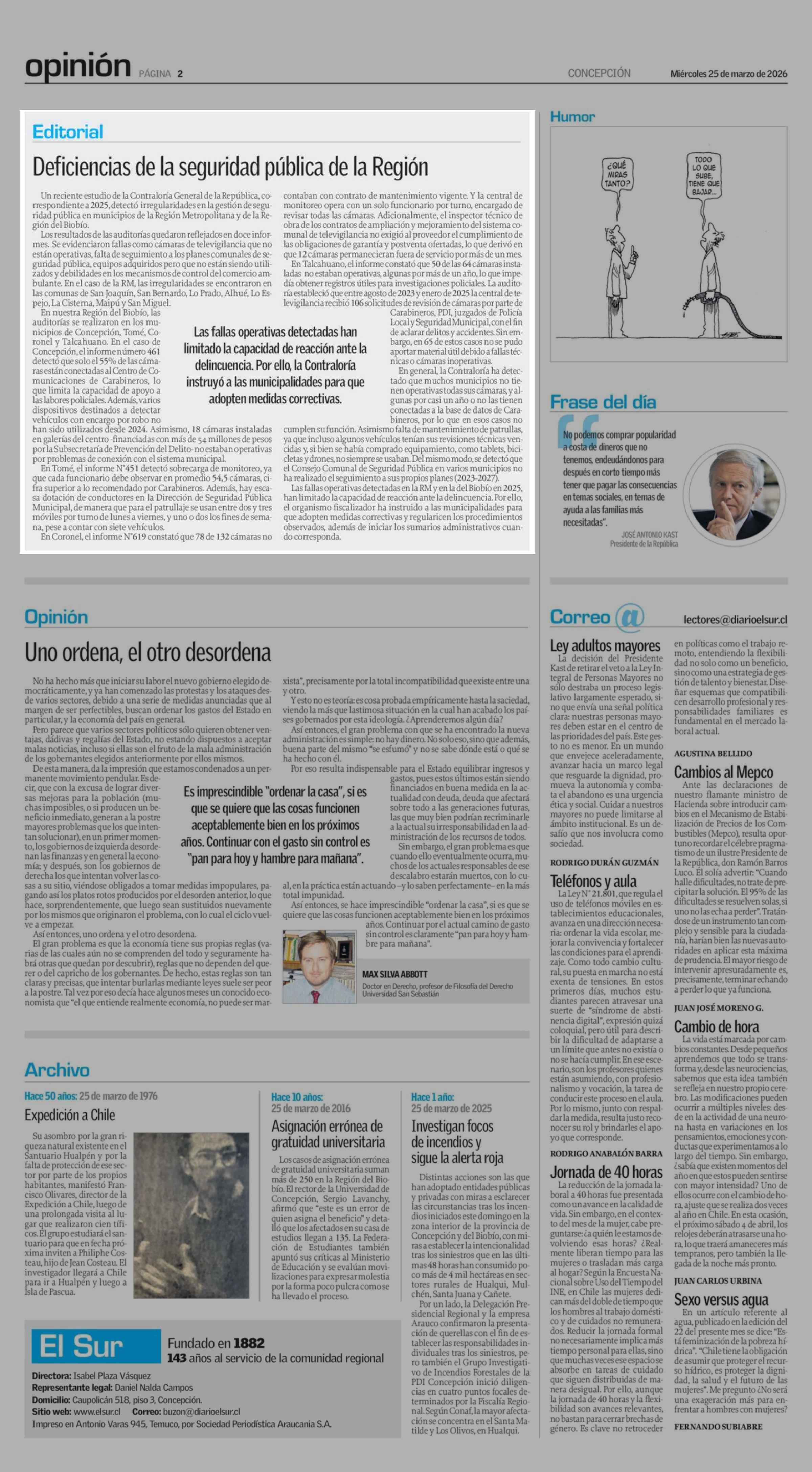 Deficiencias de la seguridad pública de la Región 25-03-2026 El Sur |