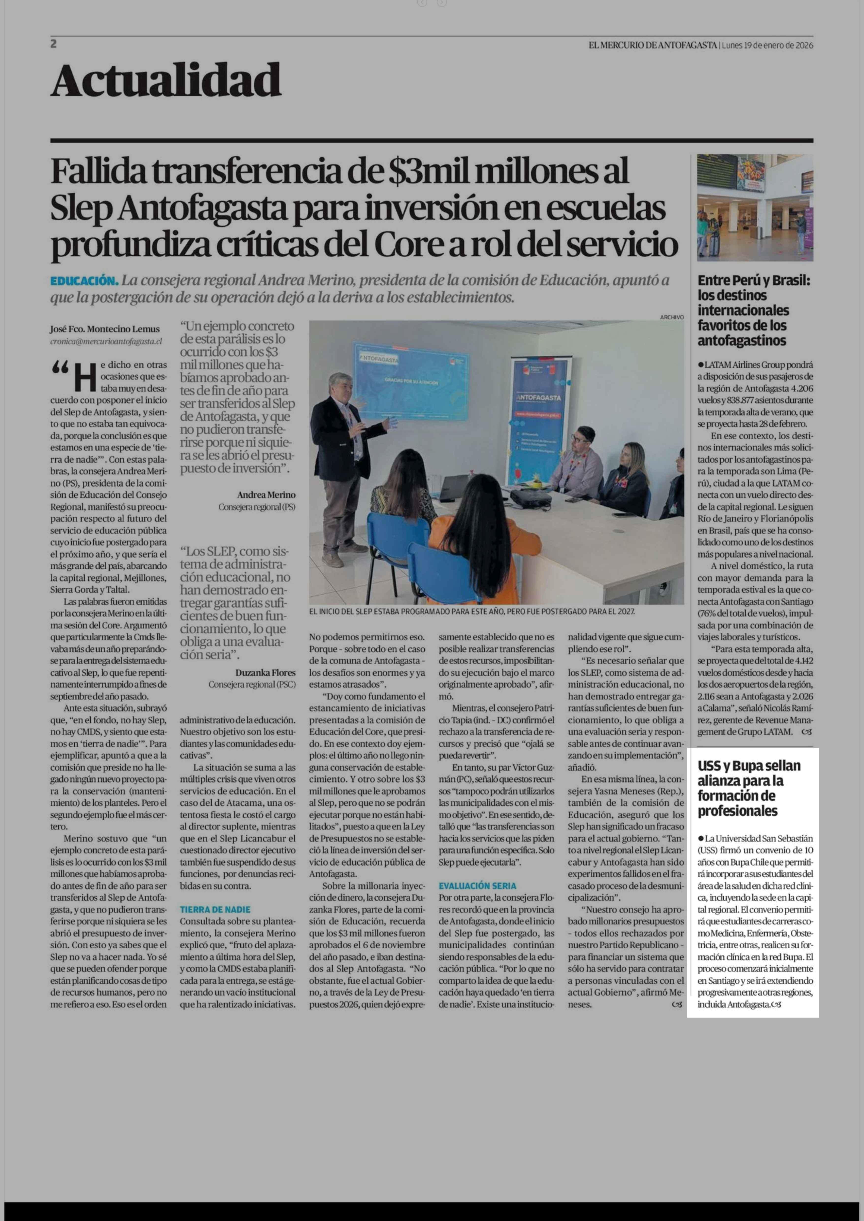 USS y Bupa sellan alianza para la formación de profesionales 19-01-2026 El Mercurio de Antofagasta |
