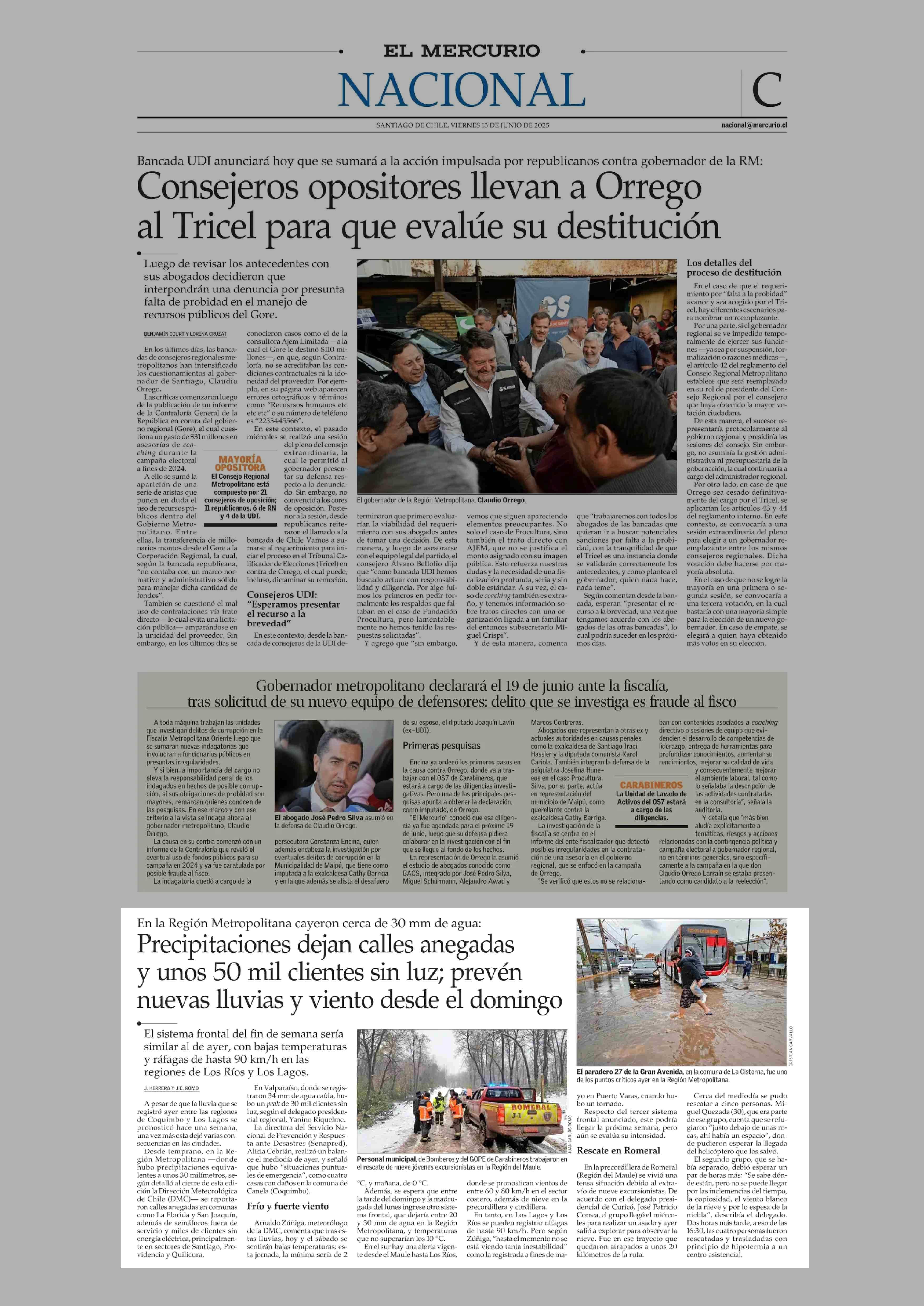 Precipitaciones dejan calles anegadas y unos 50 mil clientes sin luz; prevén nuevas lluvias y viento desde el domingo 13-06-2025 El Mercurio |