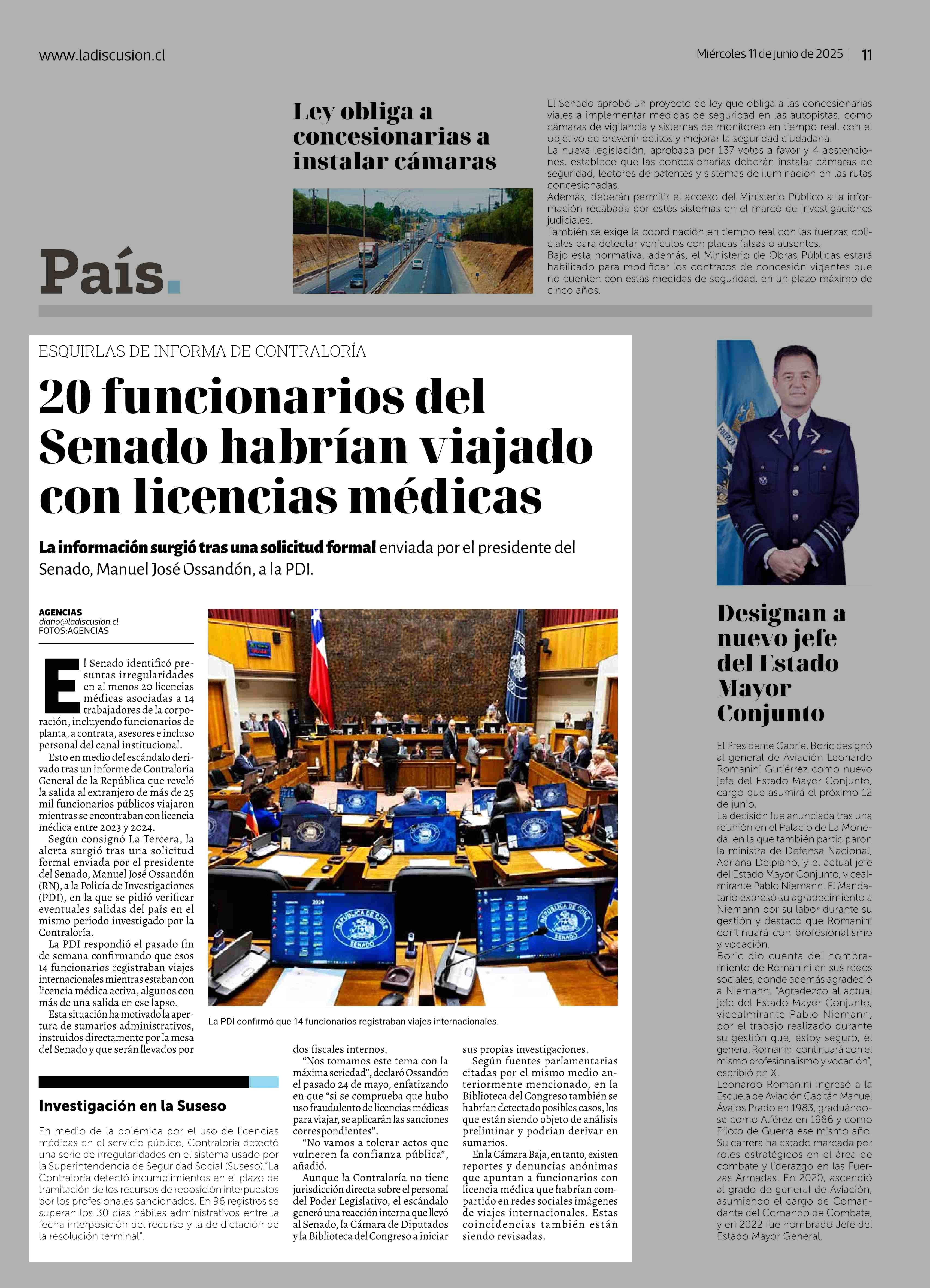 20 Funcionarios del Senado habrían viajado con licencias médicas 11-06-2025 La Discusión |