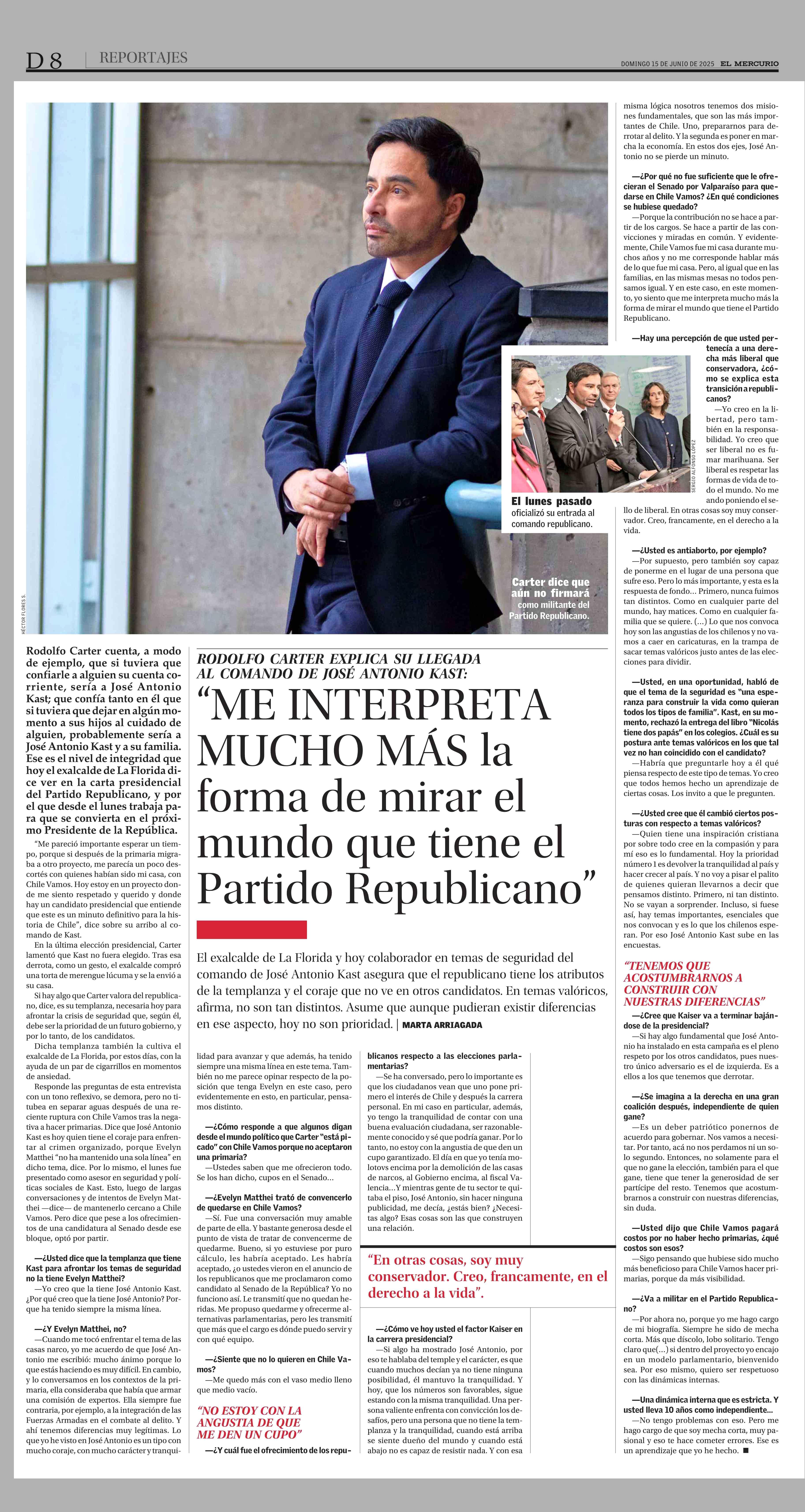 | Título: | “ME INTERPRETA MUCHO MAS la forma de mirar el mundo que tiene el Partido Republicano” |