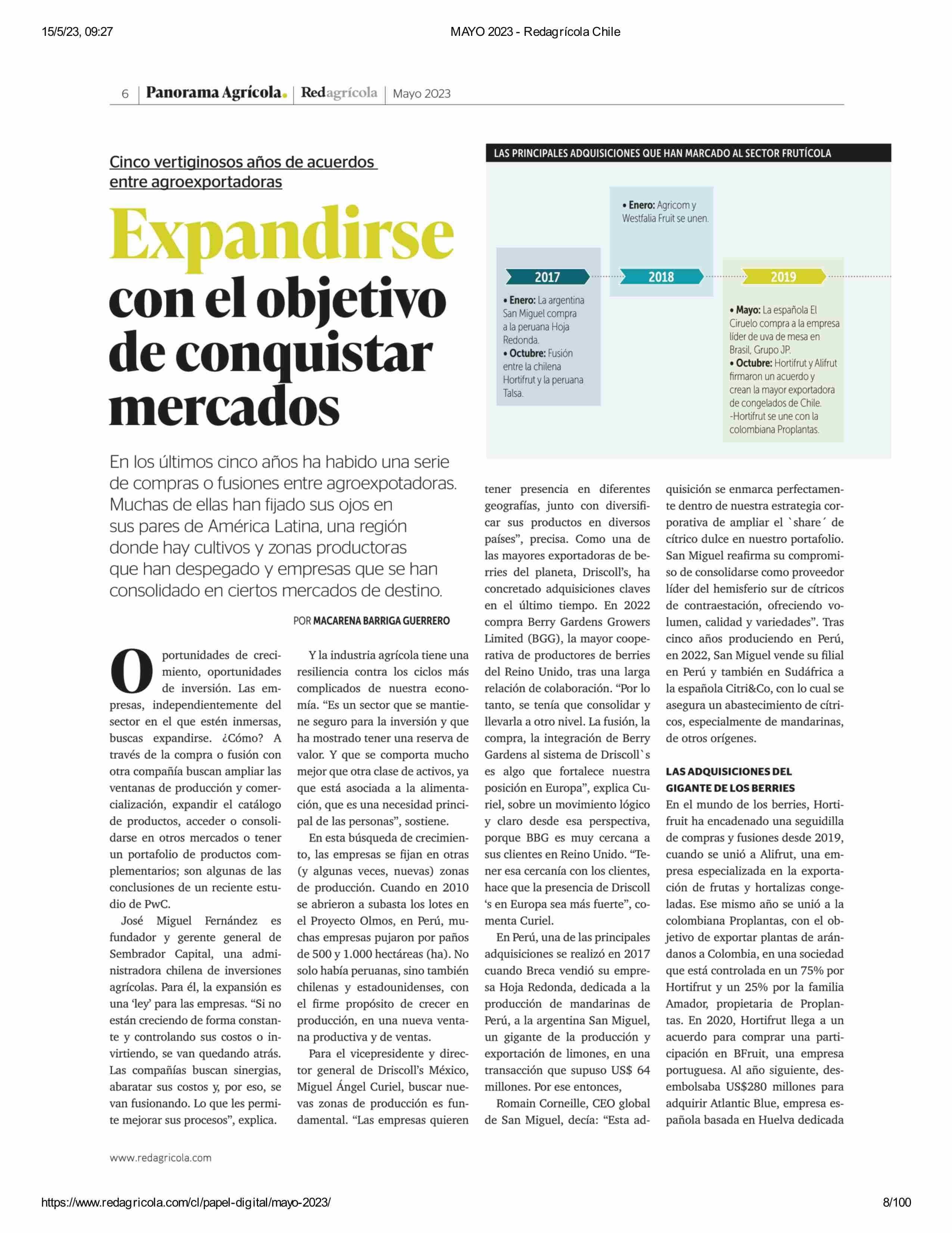 expandirse con el objetivo de conquistar mercados 15-05-2023 Revista Redagrícola |