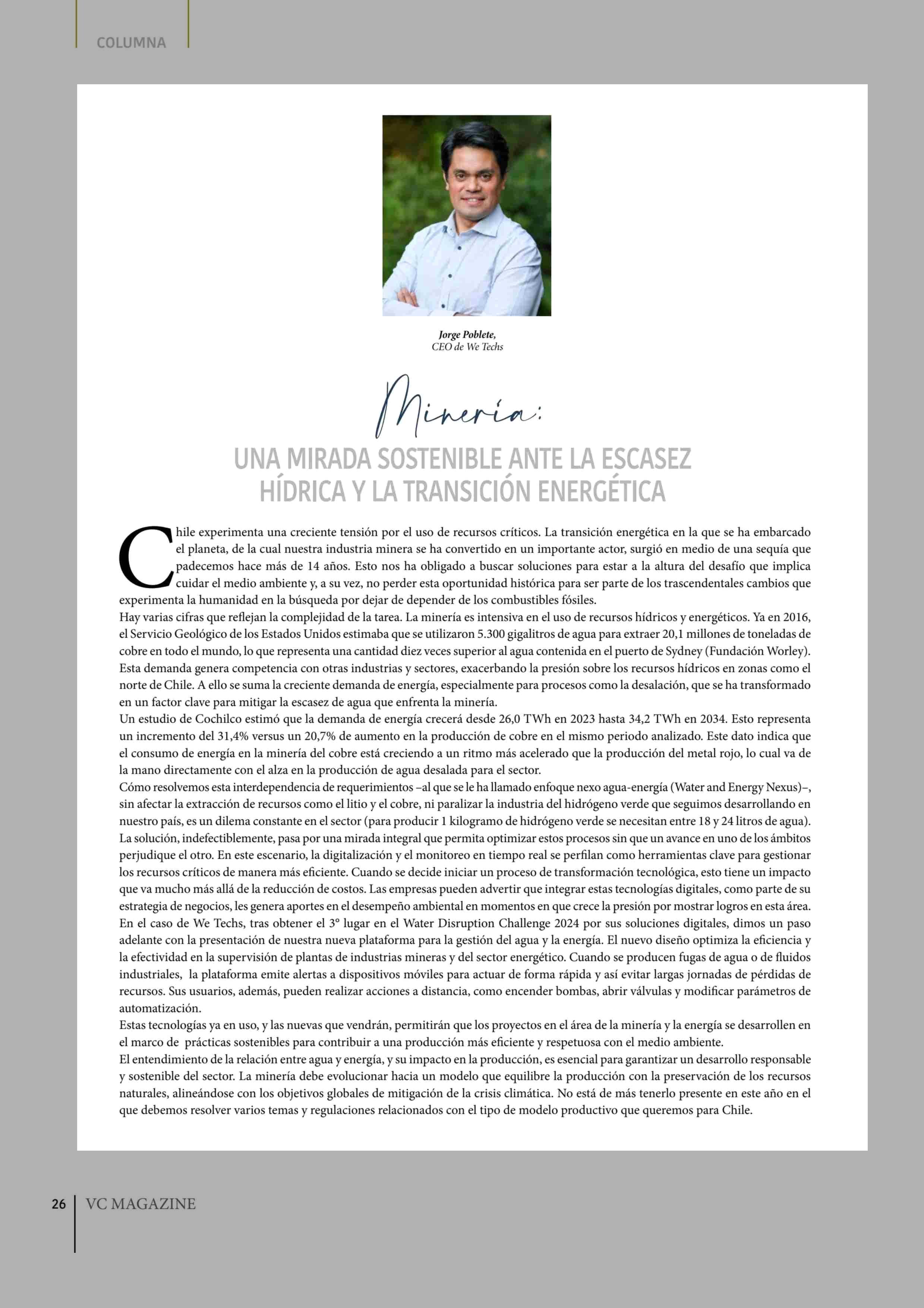 Título: COLUMNAS DE OPINIÓN: UNA MIRADA SOSTENIBLE ANTE LA ESCASEZ HIDRICA Y LA TRANSICION ENERGÉTICA