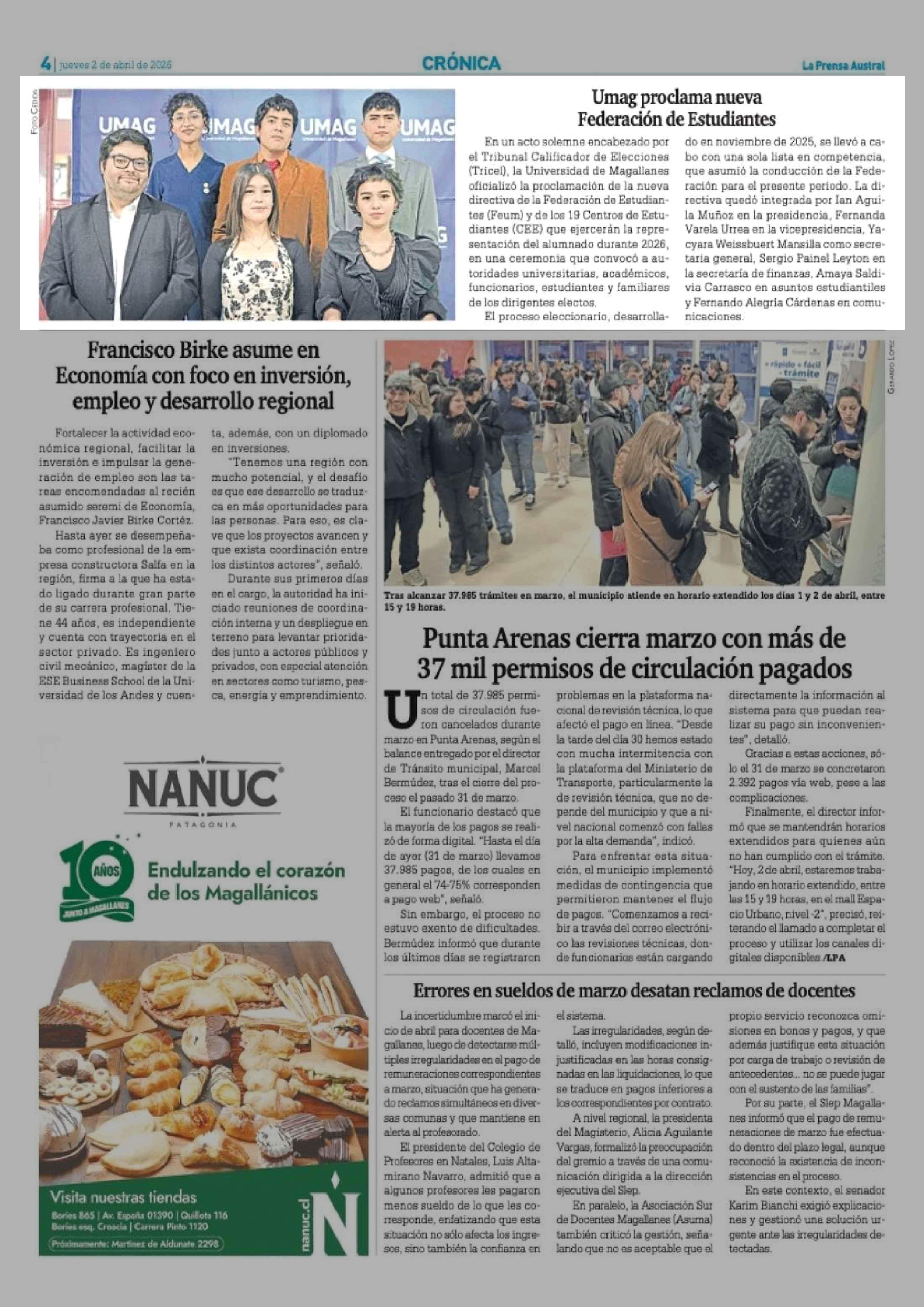 | Fecha: | 02-04-2026 | Sector: | Noticia general | Región: | Región de Magallanes y de la Antártica Chilena |