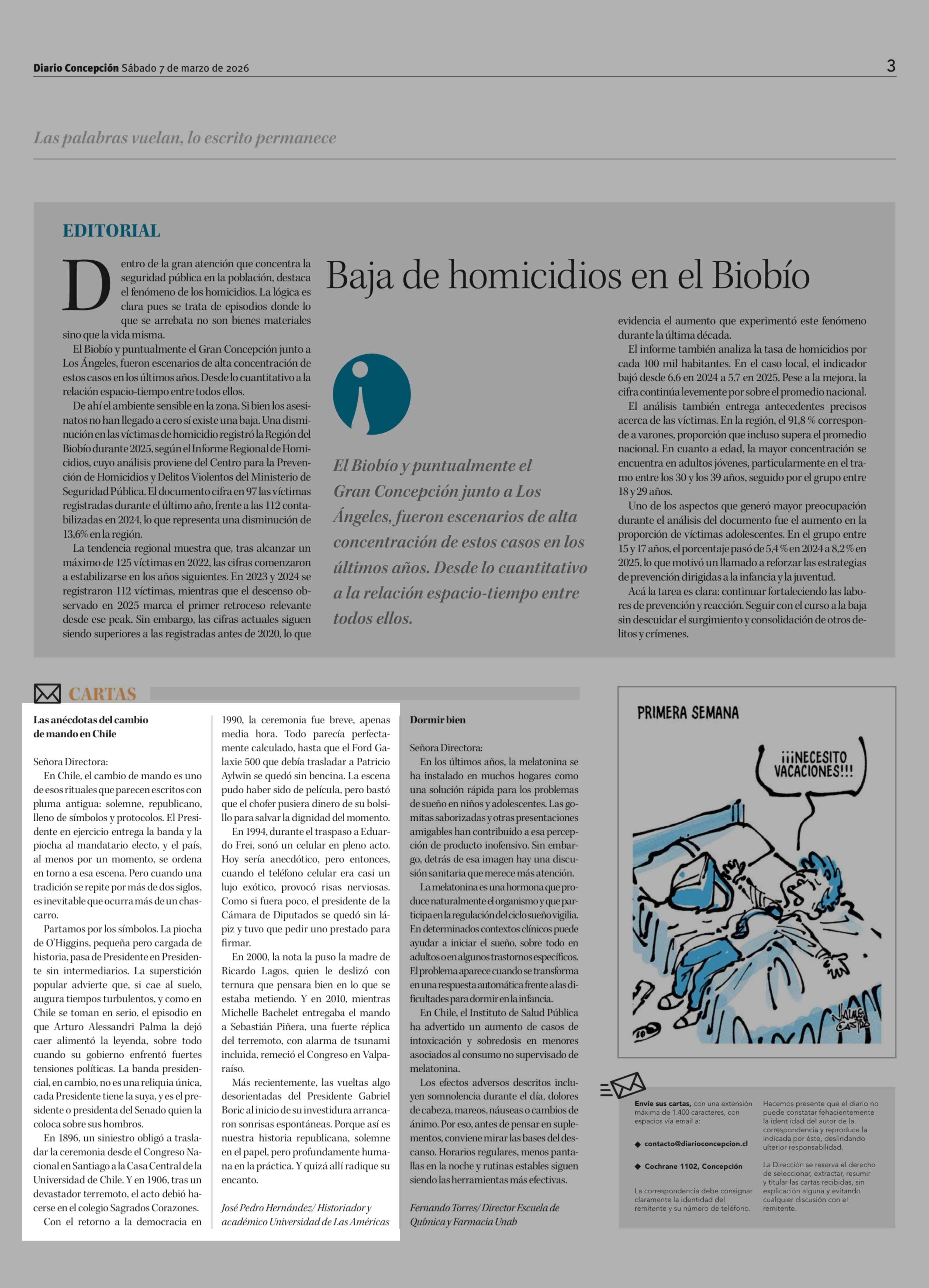 Cartas: Las anécdotas del cambio de mando en Chile 07-03-2026 Diario Concepción |