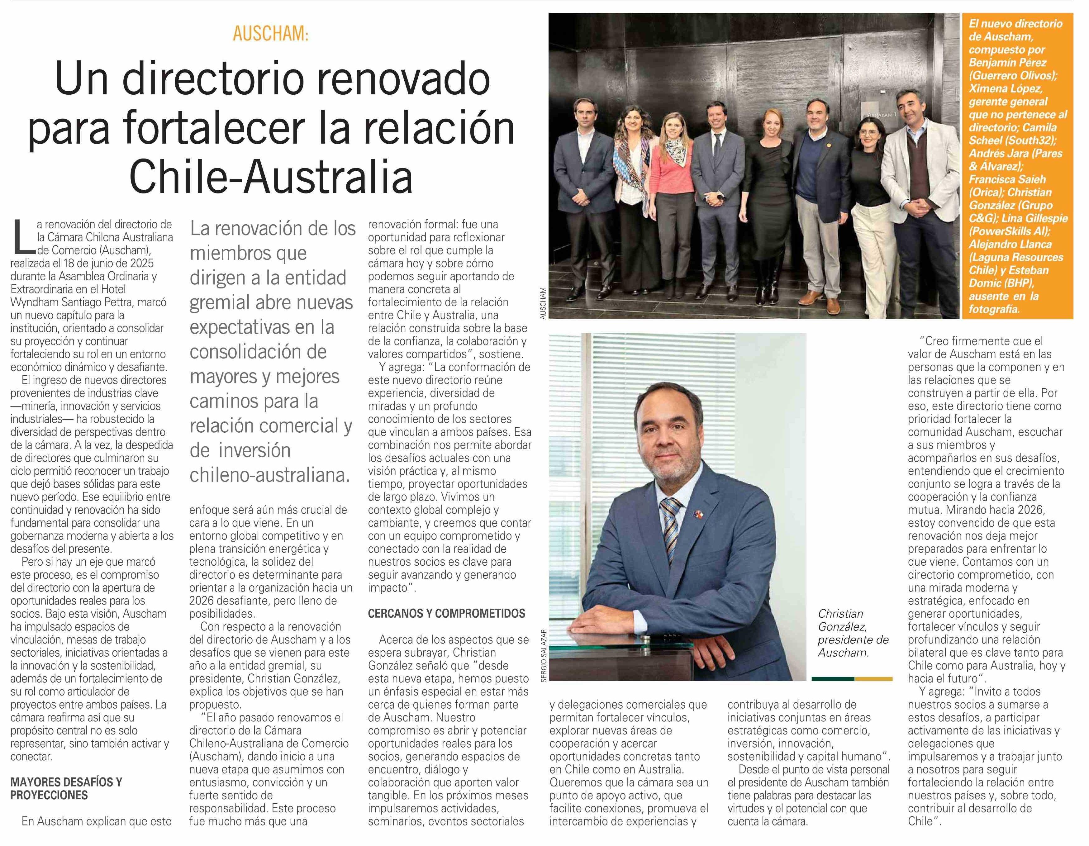 Un directorio renovado para fortalecer la relación Chile-Australia 22-01-2026 El Mercurio |
