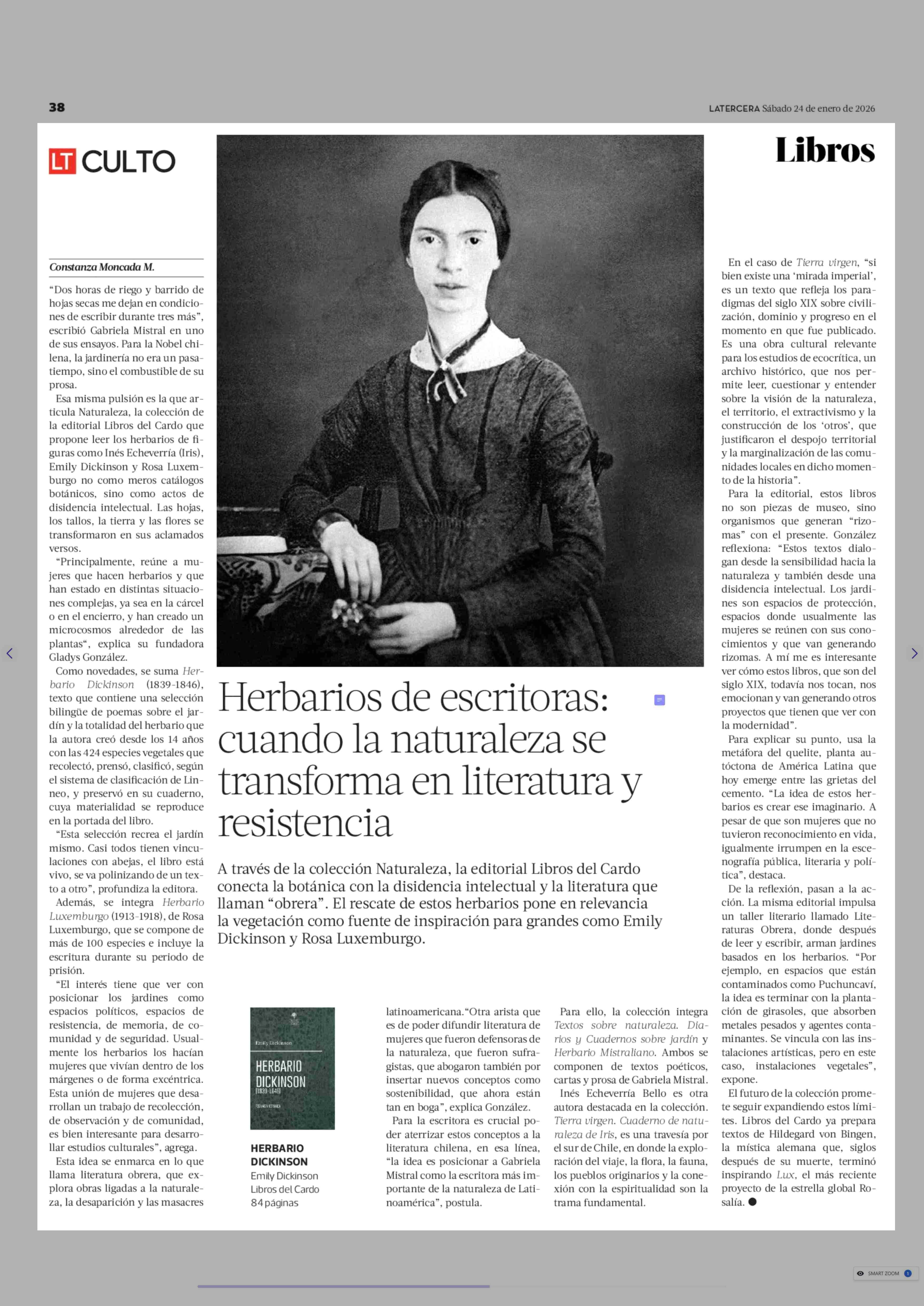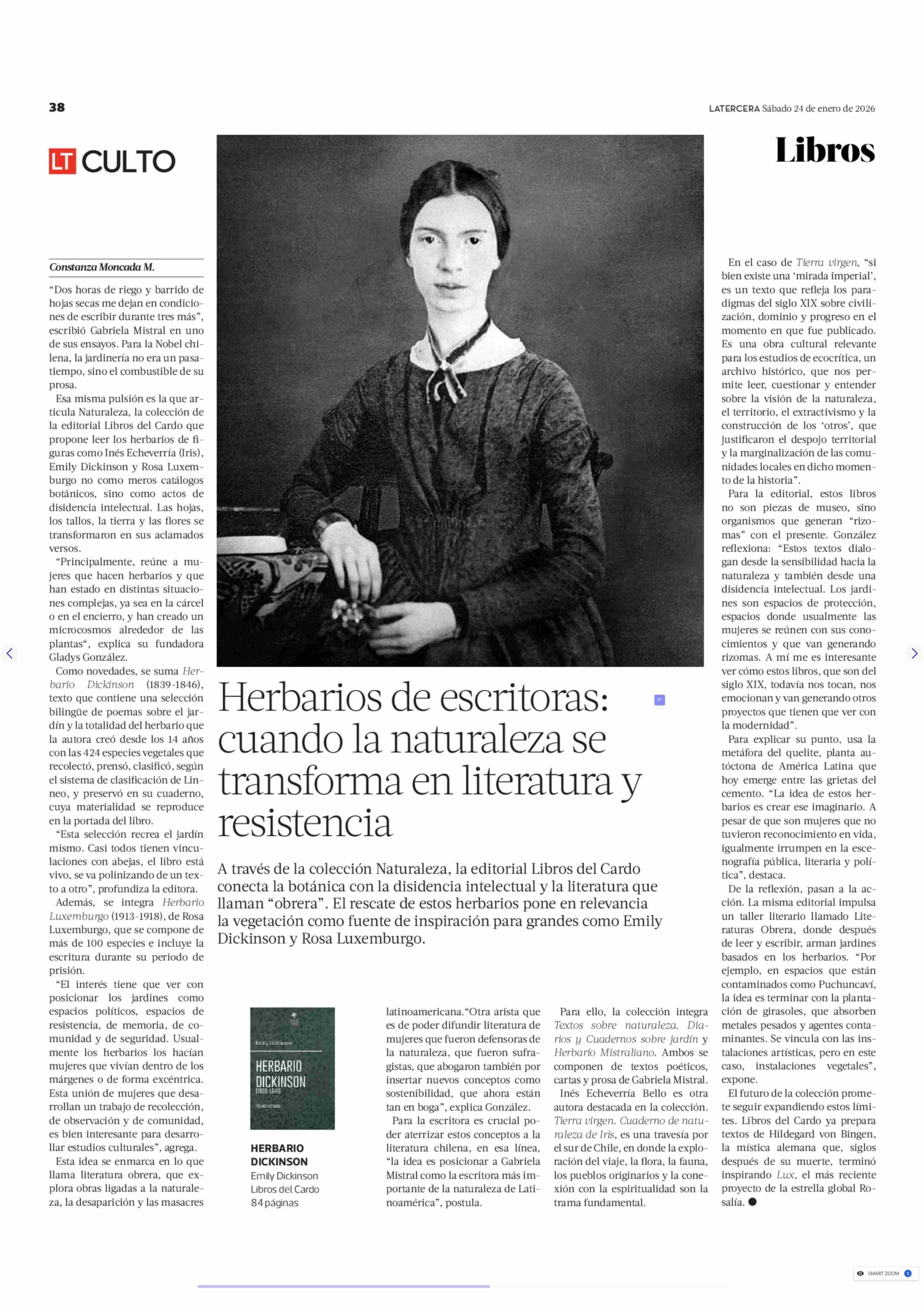 Herbarios de escritoras: cuando la naturaleza se transforma en literatura y resistencia 24-01-2026 La Tercera |