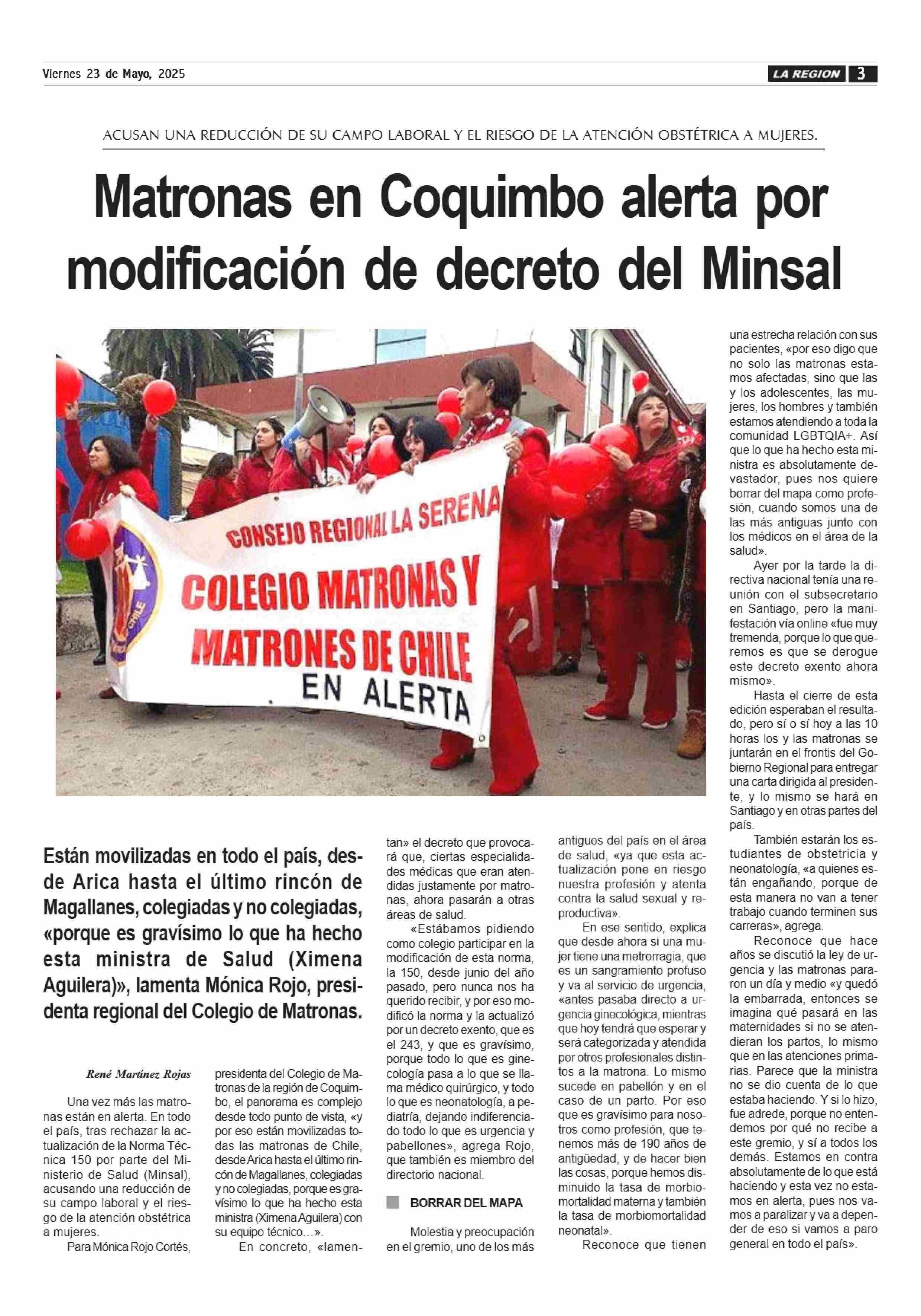 Matronas en Coquimbo alerta por modificación de decreto del Minsal 23-05-2025 Diario la Región |