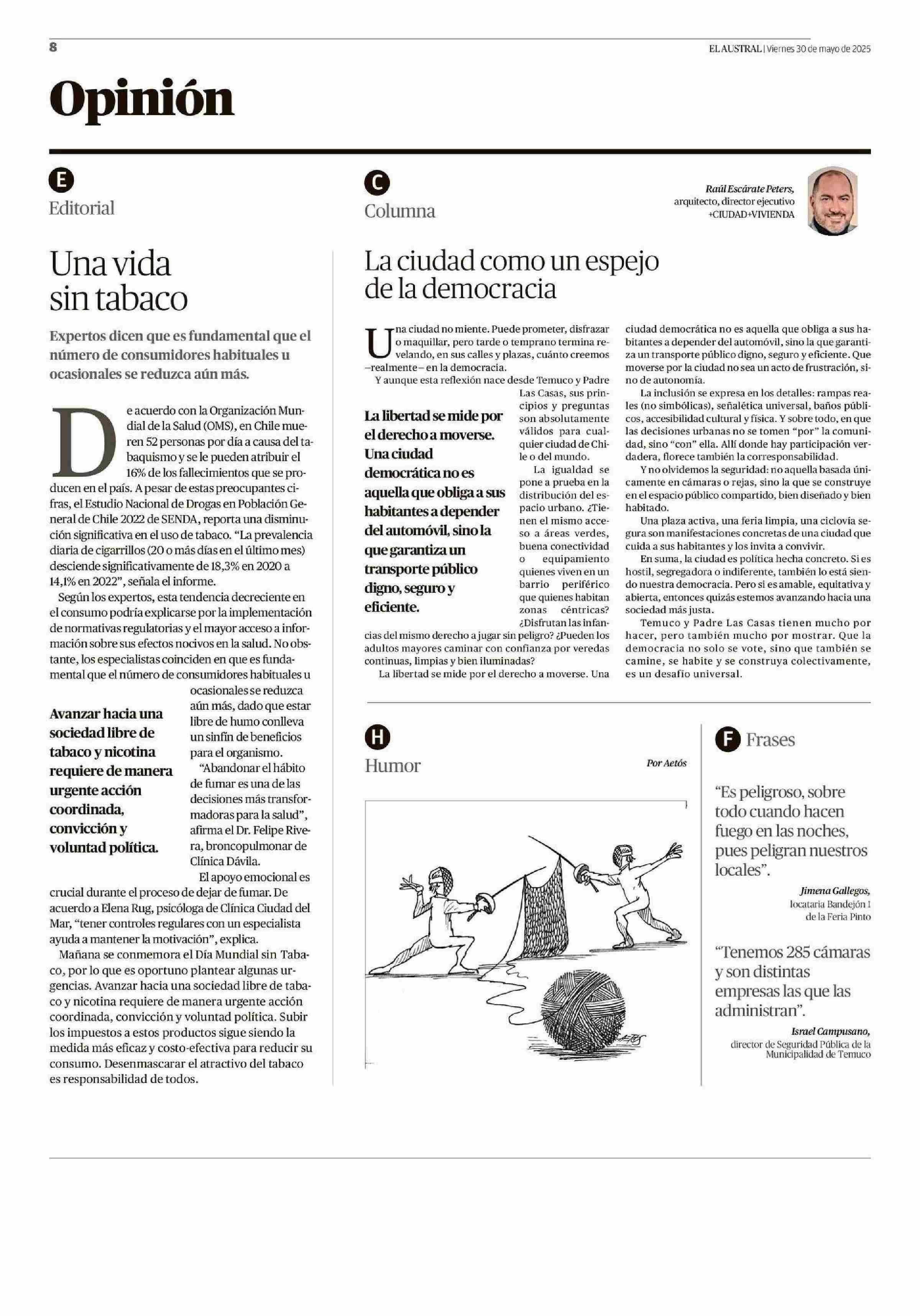 Editorial: Una vida sin tabaco 30-05-2025 El Austral de la Araucanía |