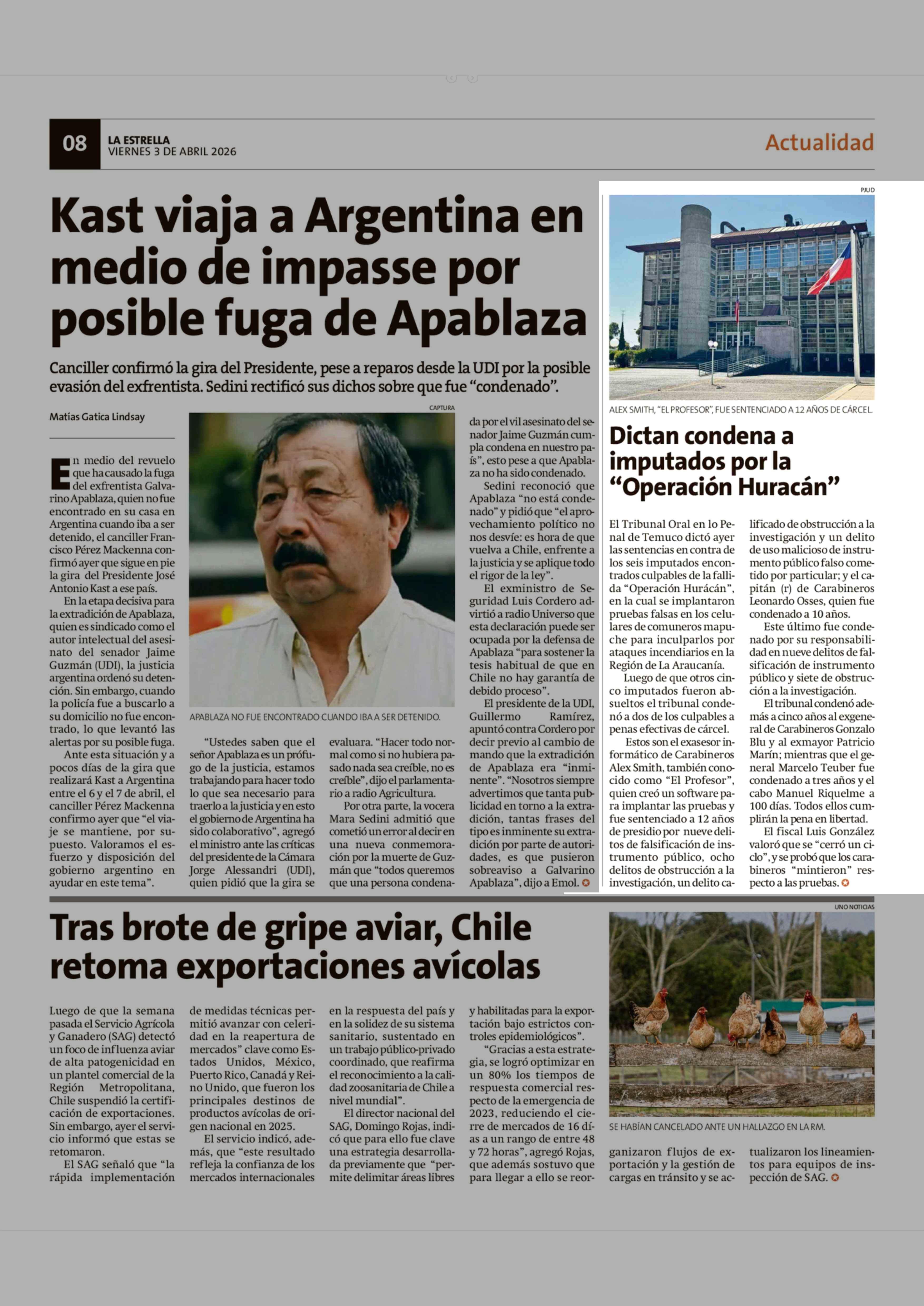 Dictan condena a imputados por la “Operación Huracán” 03-04-2026 La Estrella de Valparaíso |