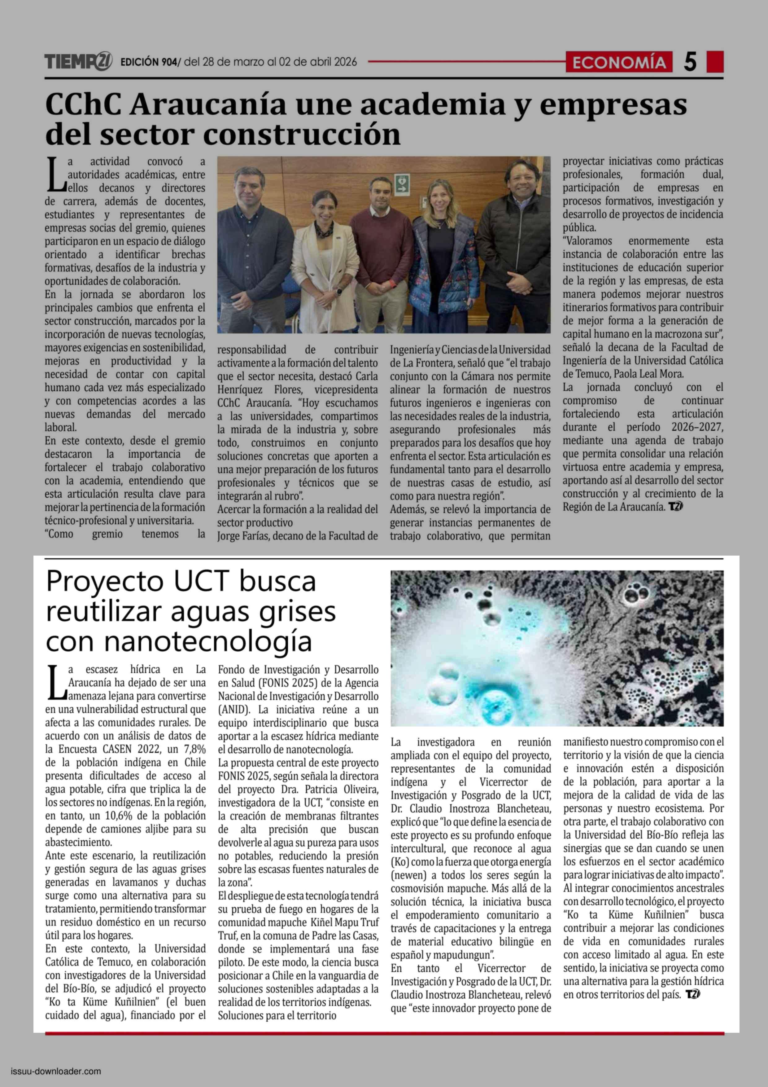 Título: Proyecto UCT busca reutilizar aguas grises con nanotecnología