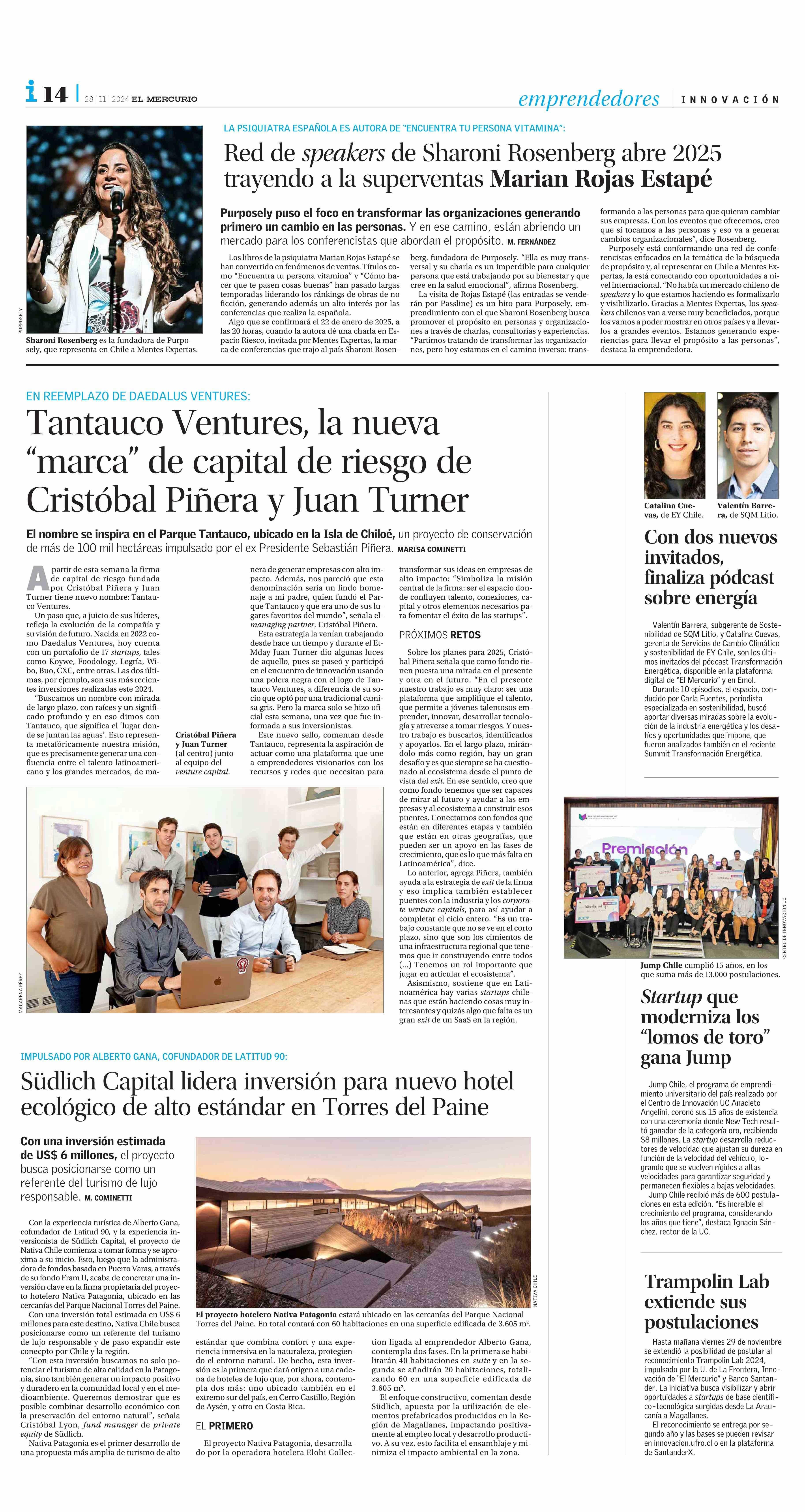Startup que moderniza los “lomos de toro” gana Jump 28-11-2024 El Mercurio |