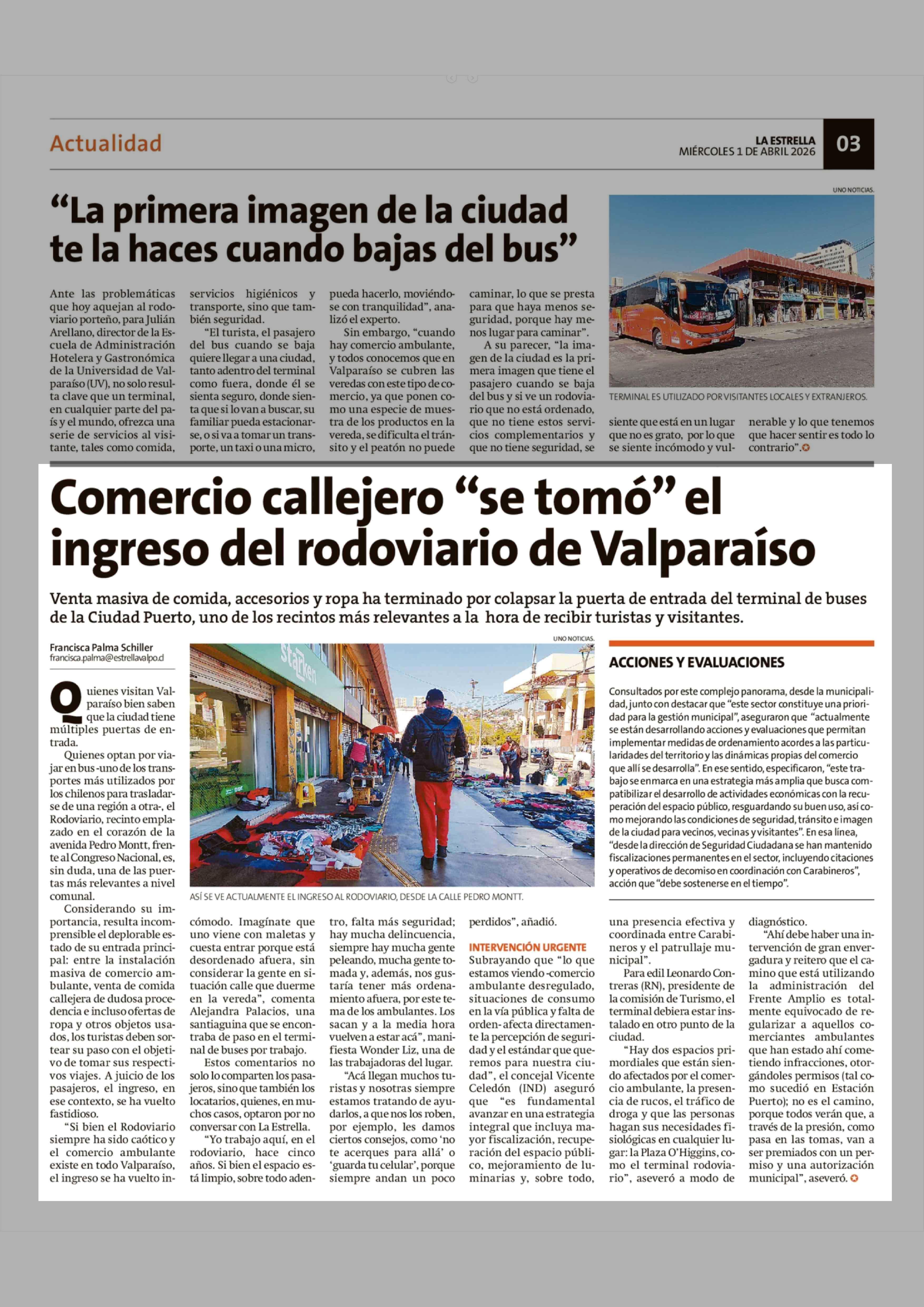 Comercio callejero "se tomó" el ingreso del rodoviario de Valparaíso 01-04-2026 La Estrella de Valparaíso |