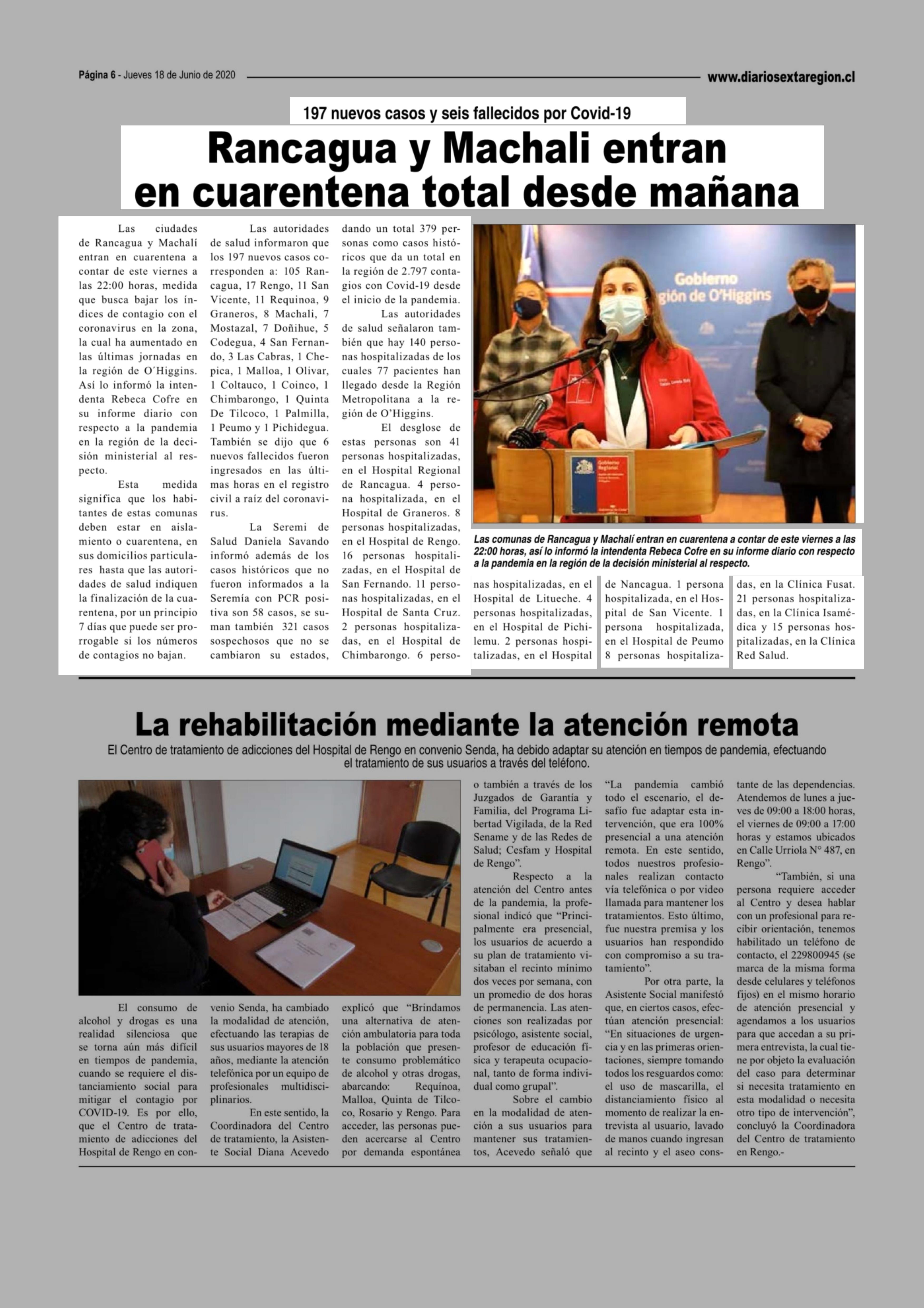 Rancagua y Machali entran en cuarentena total desde mañana 18-06-2020 Diario VI Región |