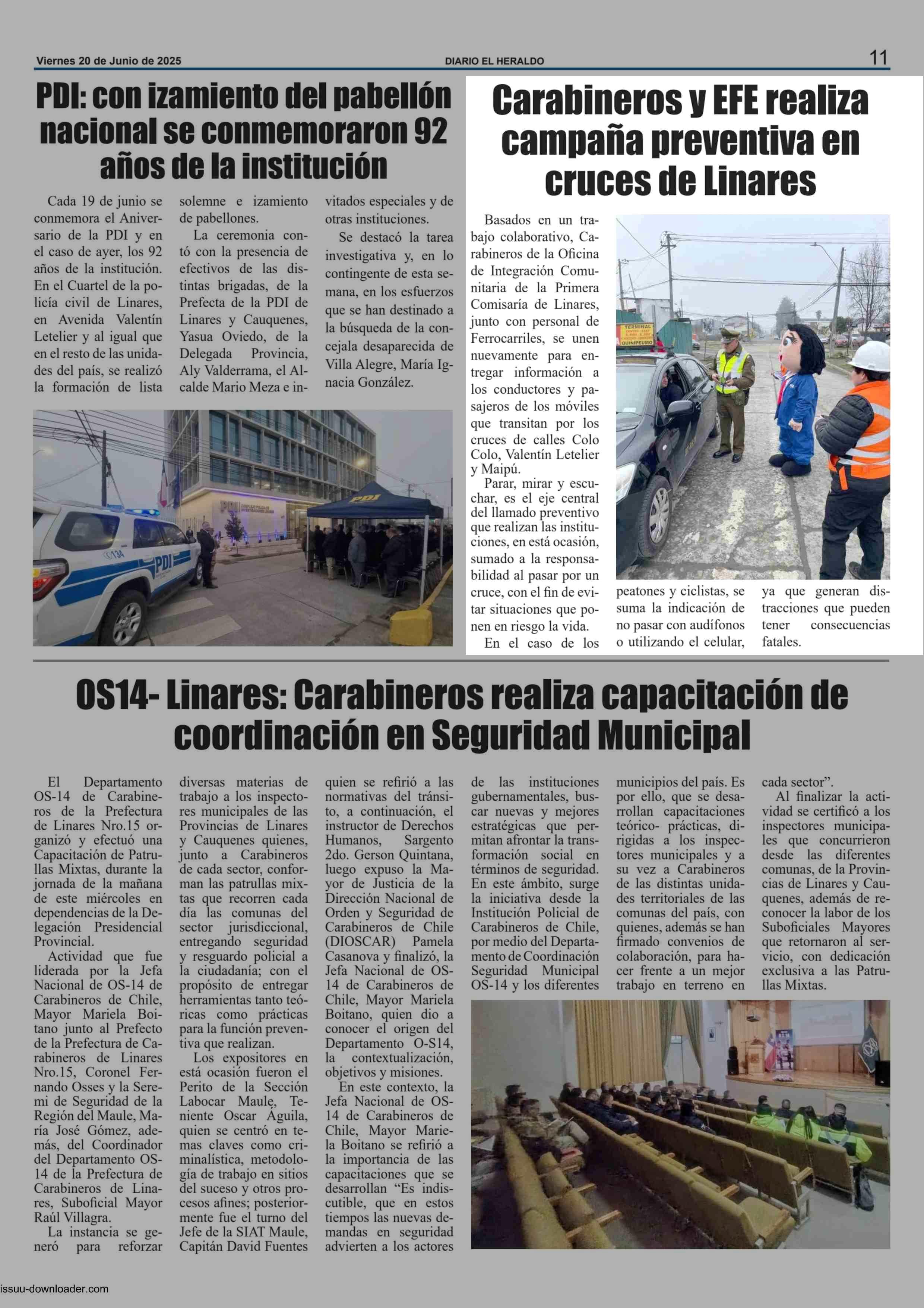 Carabineros y EFE realiza campaña preventiva en cruces de Linares 20-06-2025 El Heraldo |