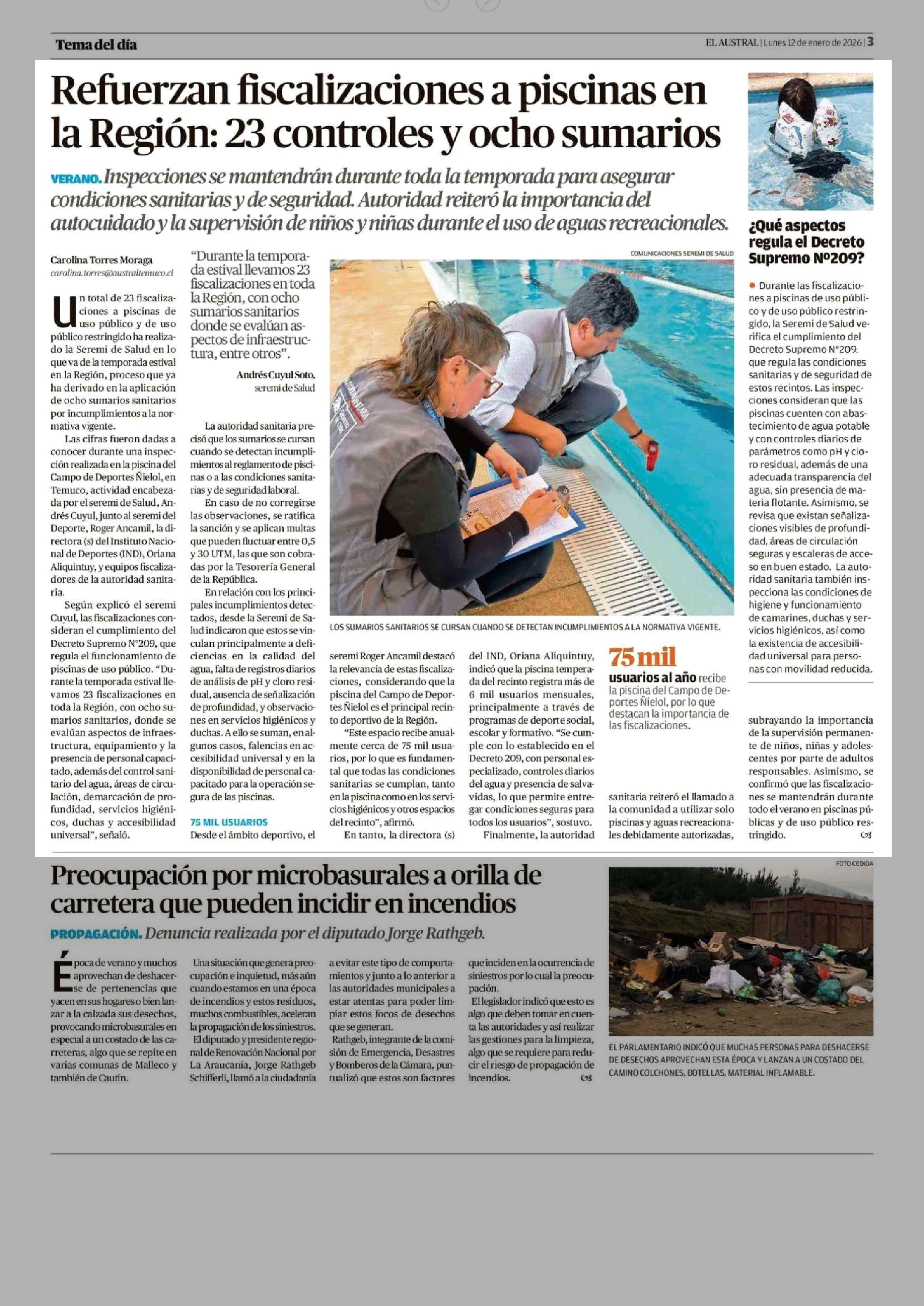 Título: Refuerzan fiscalizaciones a piscinas en la Región: 23 controles y ocho sumarios