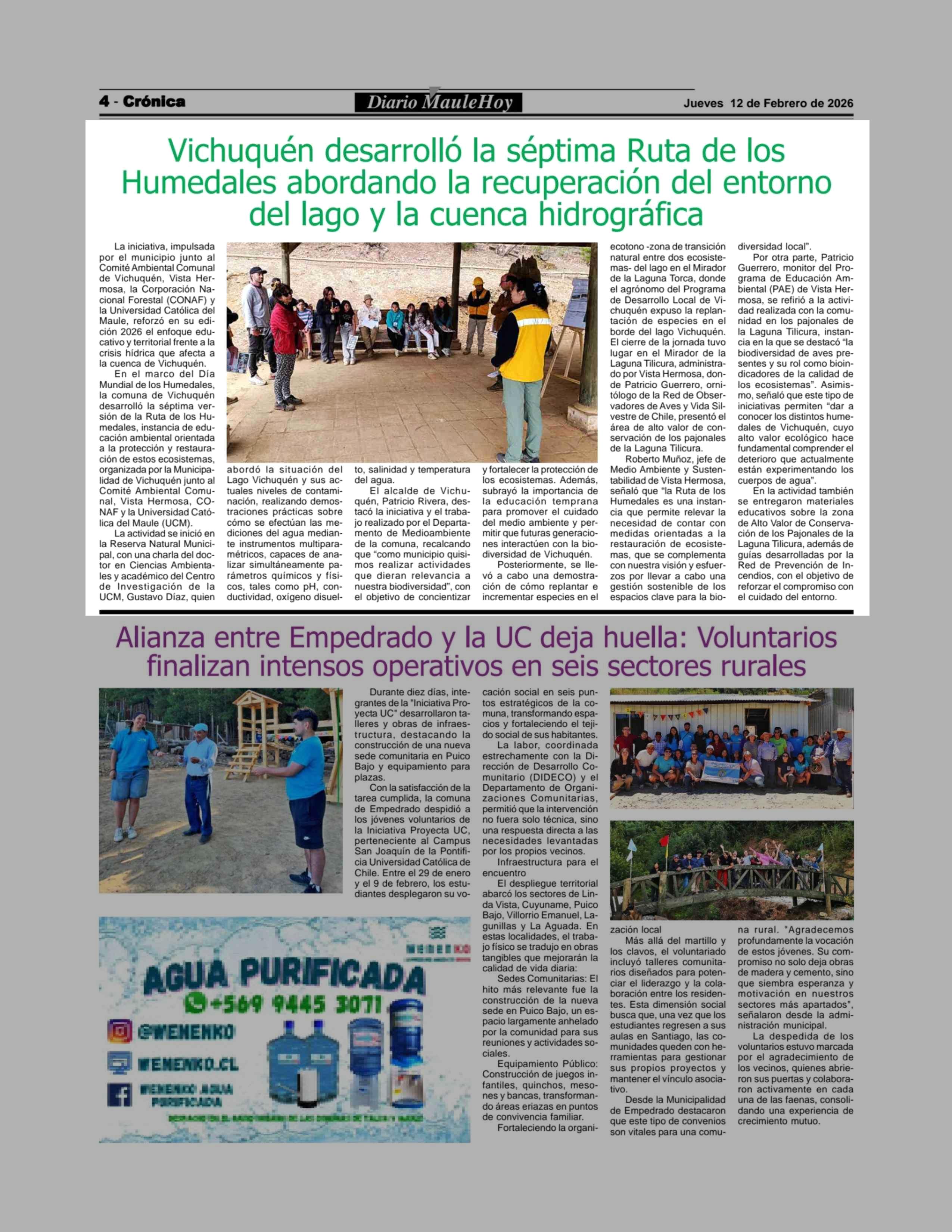 Vichuquén desarrolló la séptima Ruta de los Humedales abordando la recuperación del entorno del lago y la cuenca hidrográfica 12-02-2026 Maule Hoy |