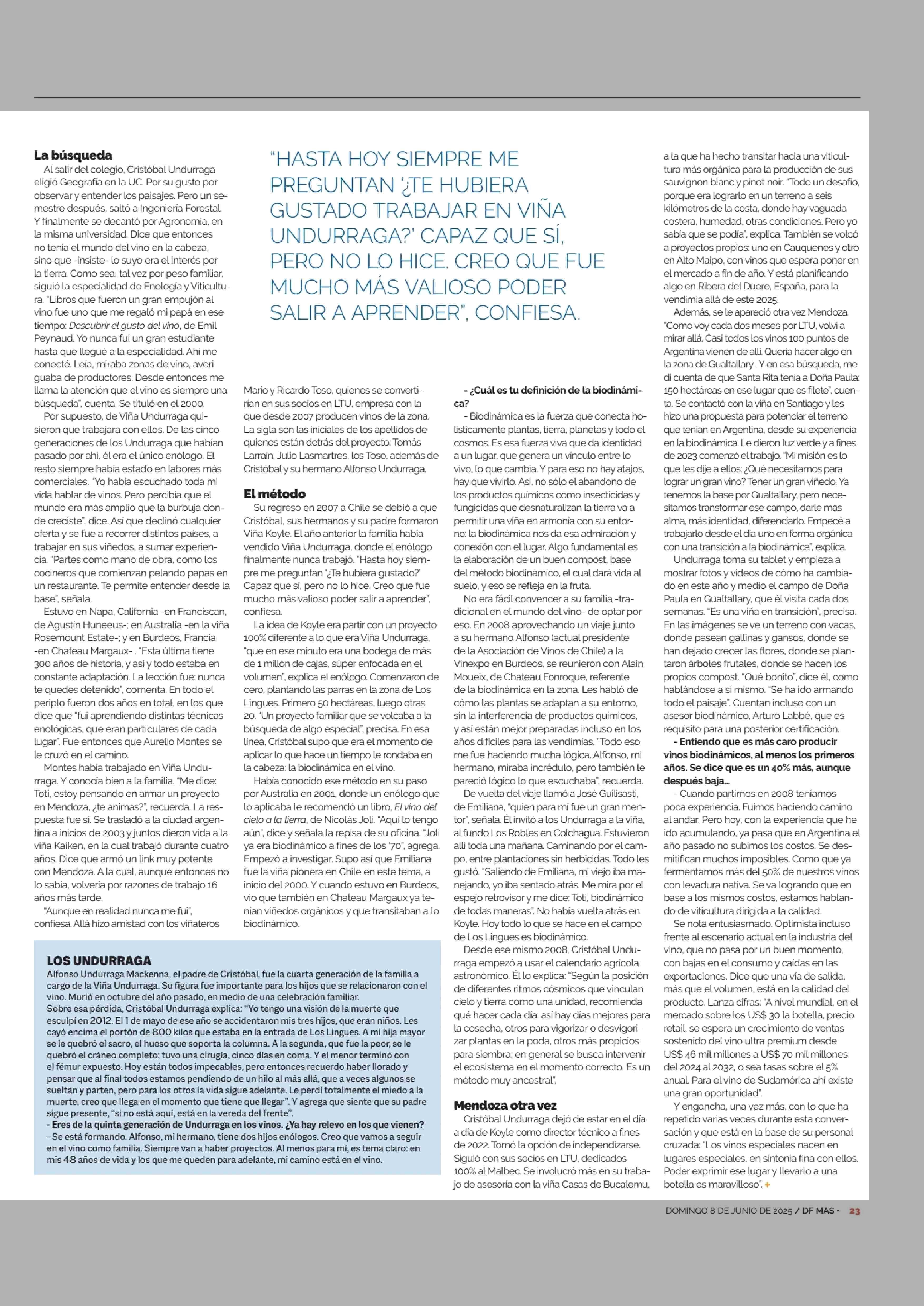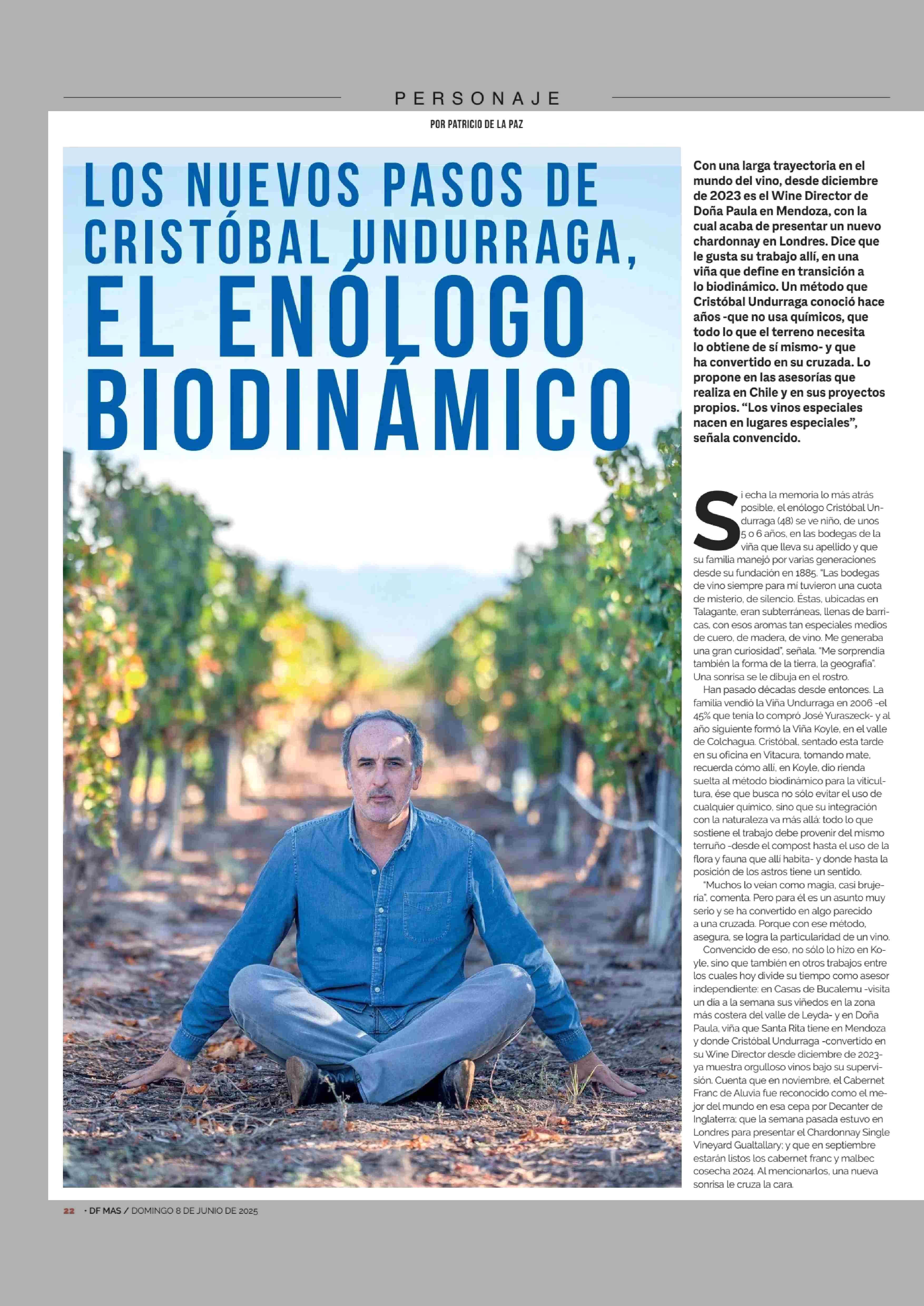 LOS NUEVOS PASOS DE CRISTOBAL UNDURRAGA, EL ENÓLOGO BIODINÁMICO 08-06-2025 Diario Financiero |