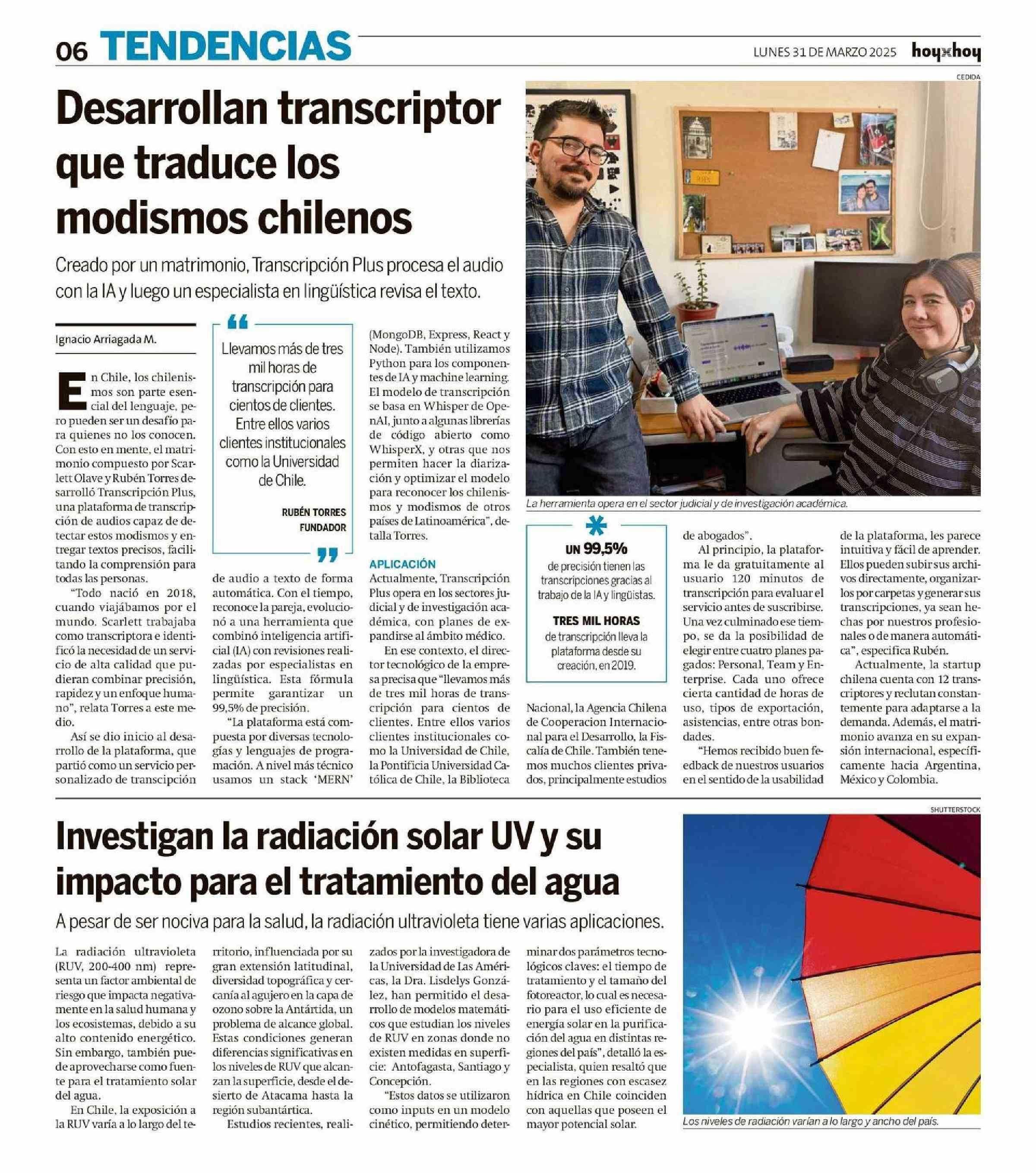 Investigan la radiación solar UV y su impacto para el tratamiento del agua 31-03-2025 Hoy x Hoy |