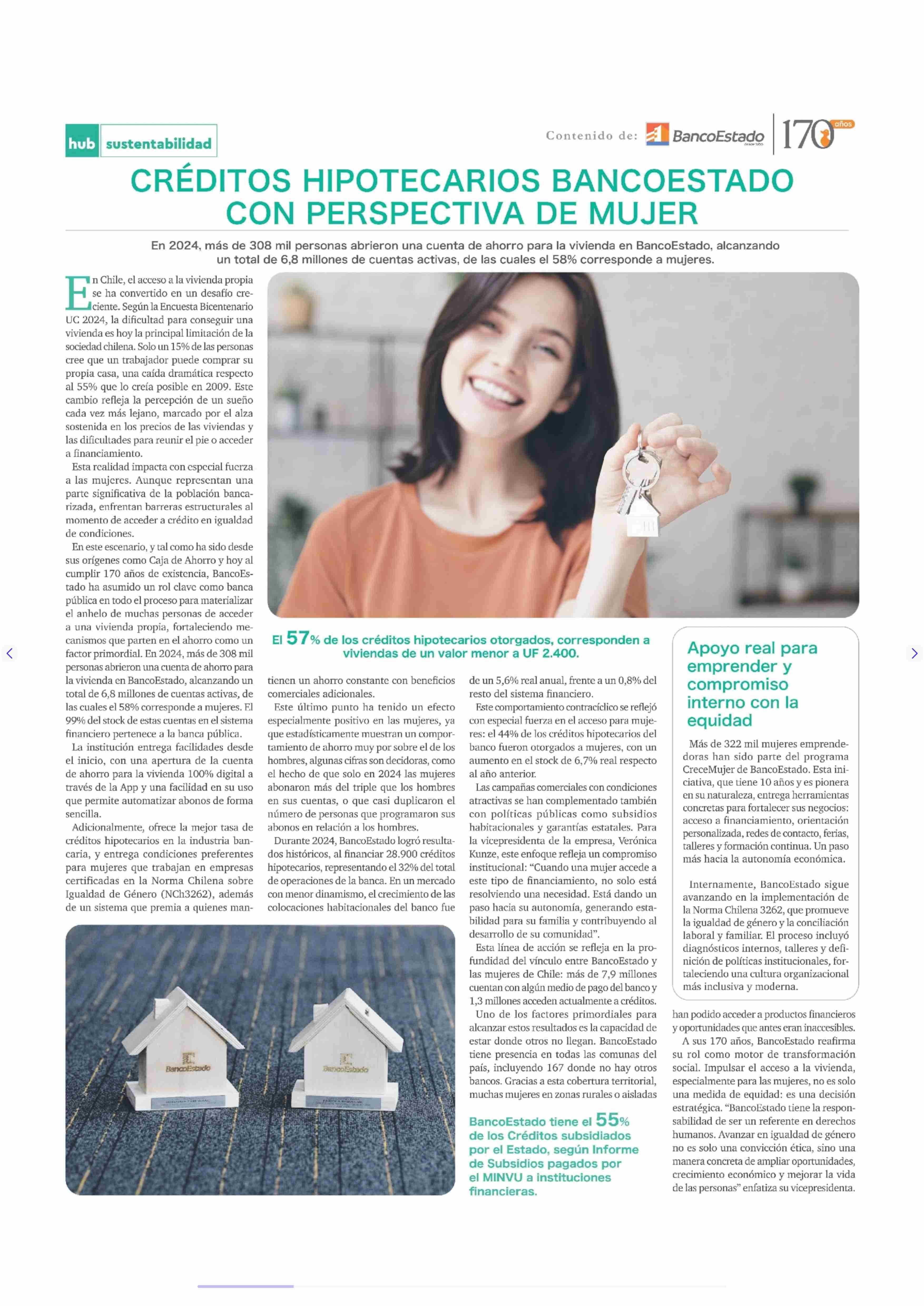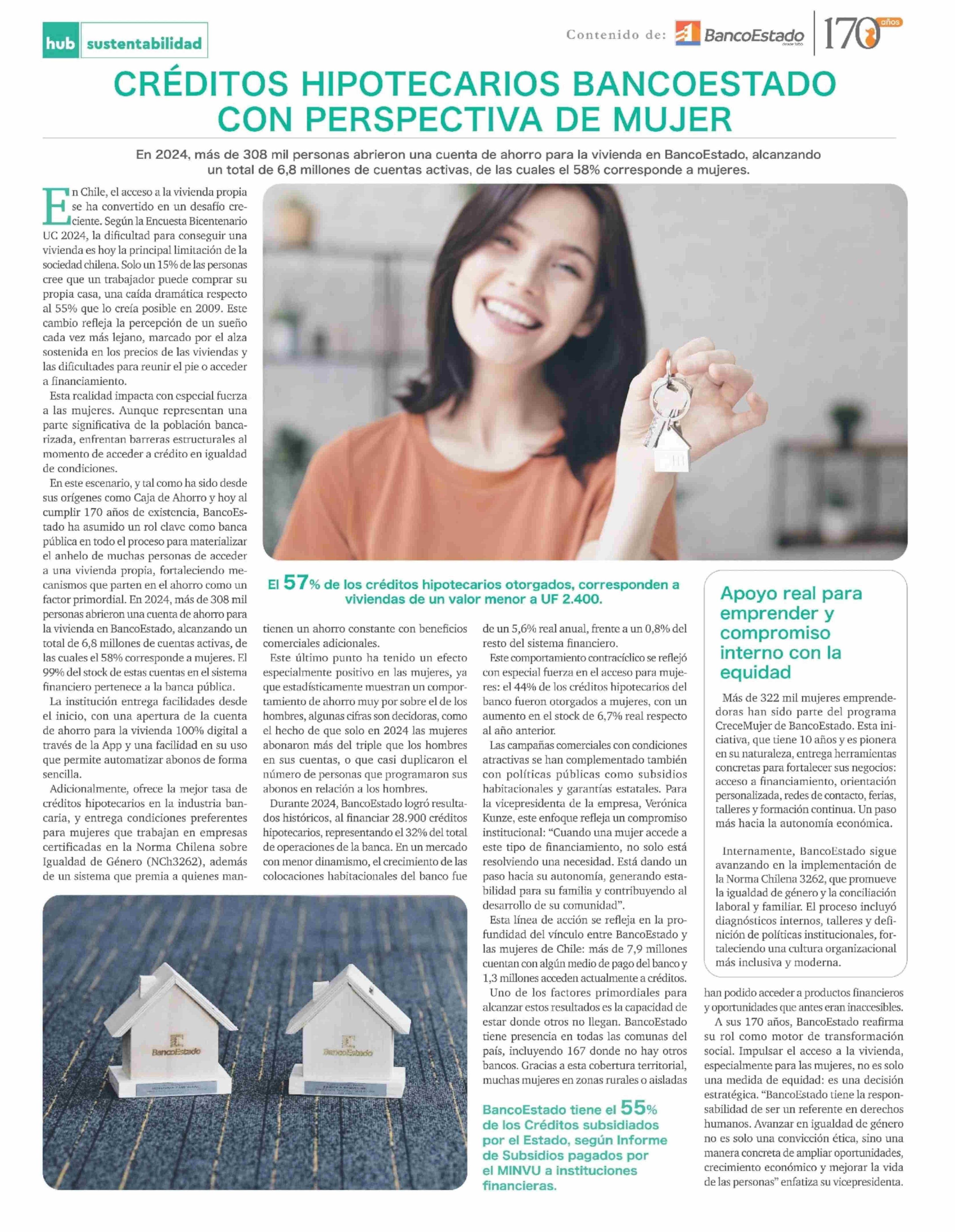 CRÉDITOS HIPOTECARIOS BANCOESTADO CON PERSPECTIVA DE MUJER 24-05-2025 La Tercera |