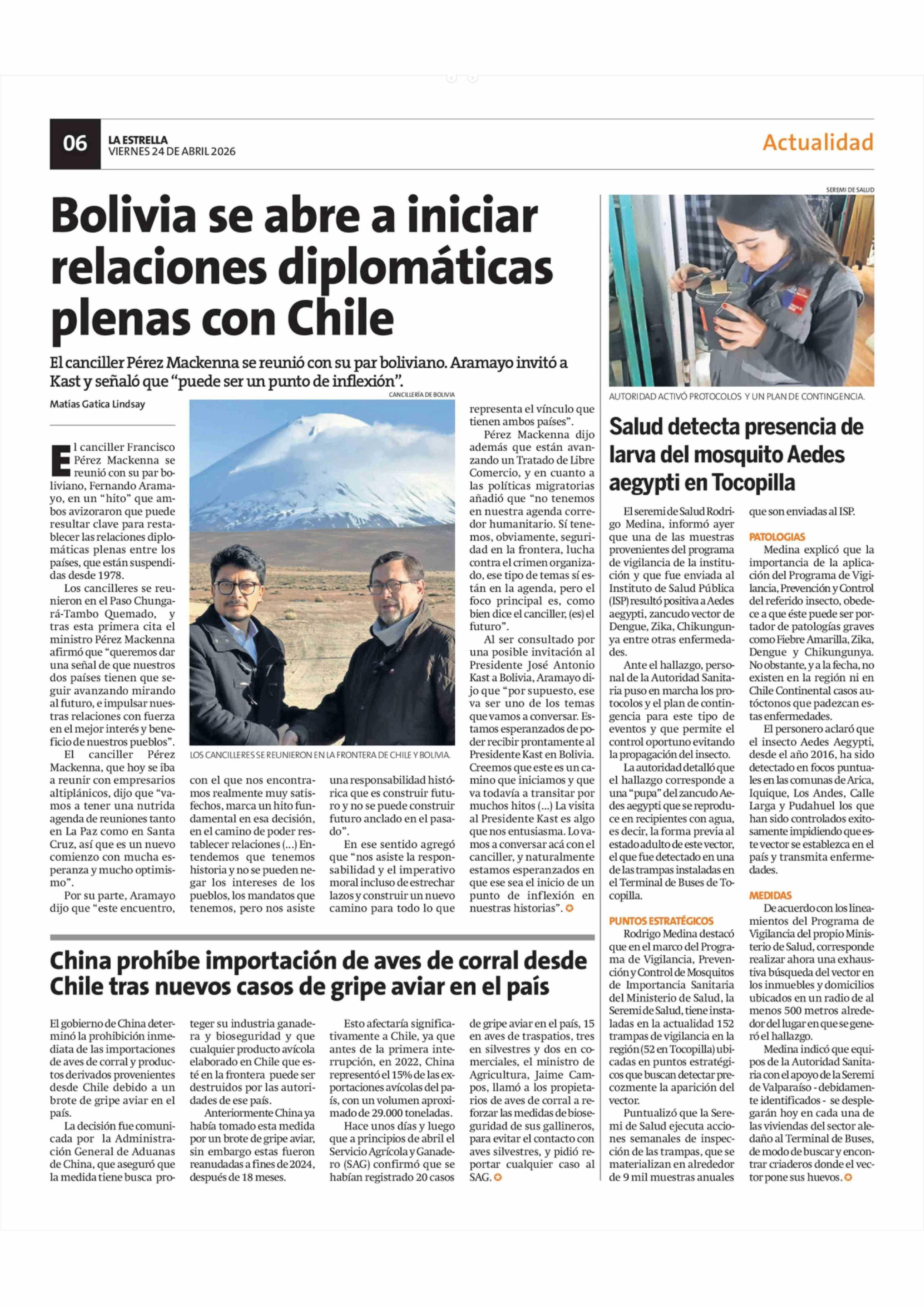 China prohíbe importación de aves de corral desde Chile tras nuevos casos de gripe aviar en el país 24-04-2026 La Estrella de Antofagasta |