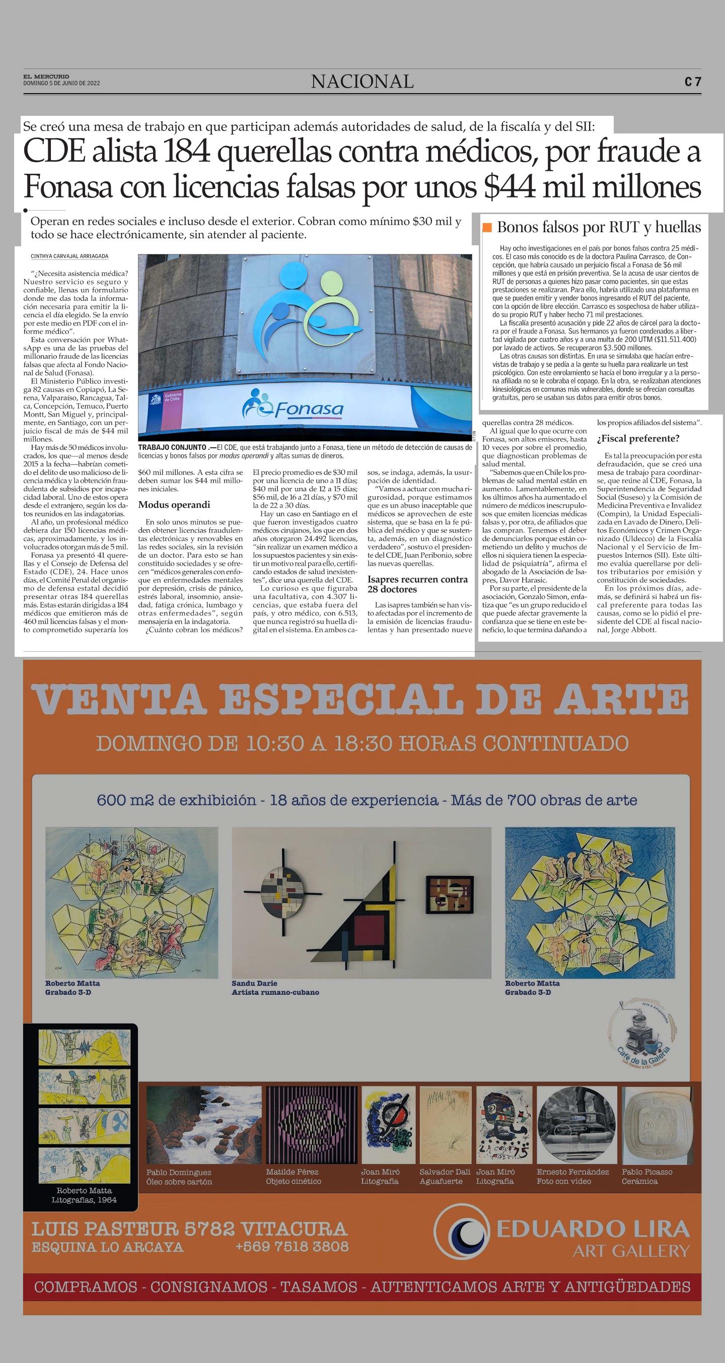 CDE alista 184 querellas contra médicos, por fraude a Fonasa con licencias falsas por unos $44 mil millones 05-06-2022 El Mercurio |
