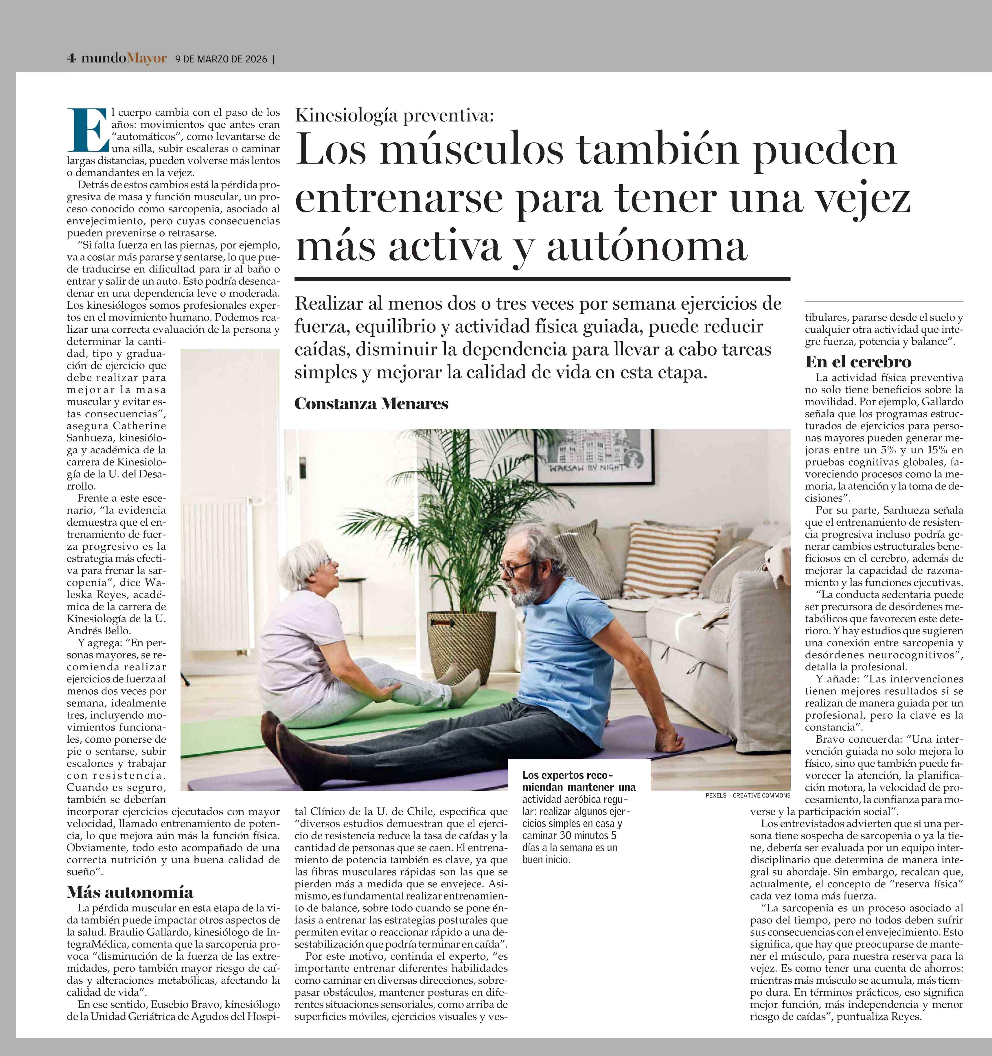 Los músculos también pueden entrenarse para tener una vejez más activa y autónoma 09-03-2026 El Mercurio |