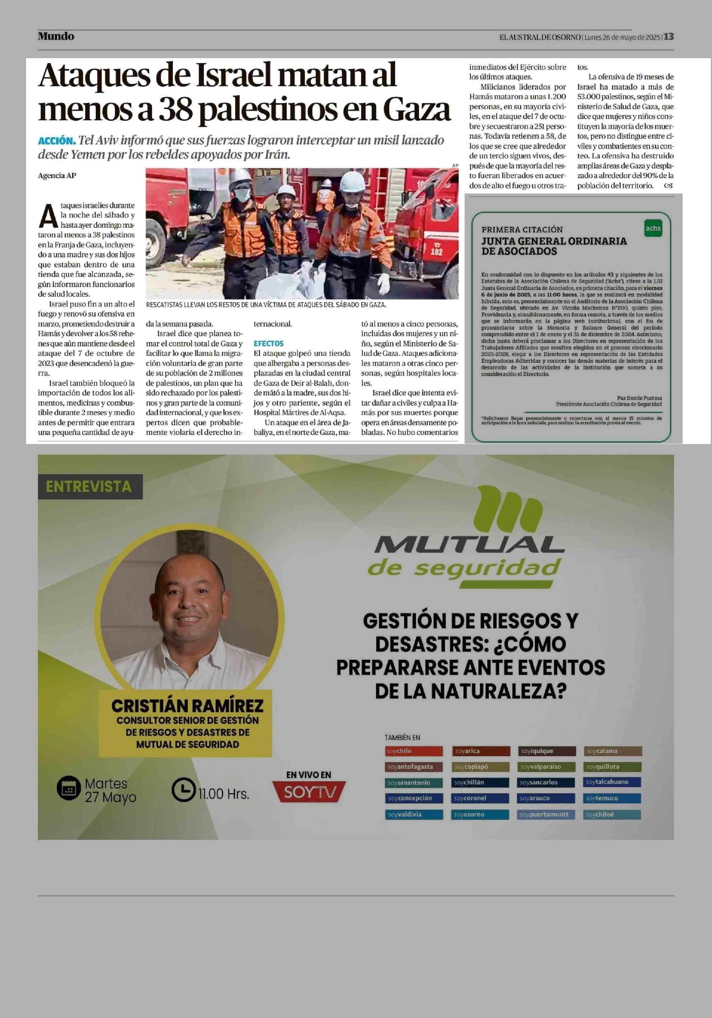 Ataques de Israel matan al menos a 38 palestinos en Gaza 26-05-2025 El Austral de Osorno |
