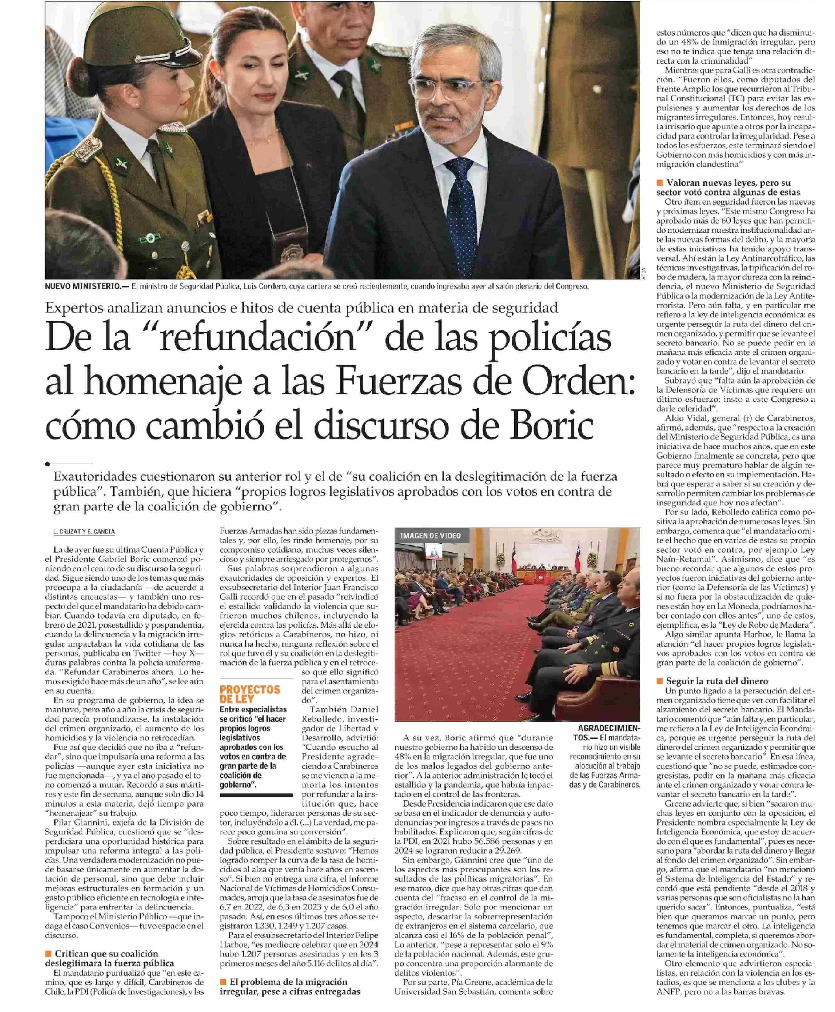 De la “refundación” de las policías al homenaje a las Fuerzas de Orden: cómo cambió el discurso de Boric 02-06-2025 El Mercurio |