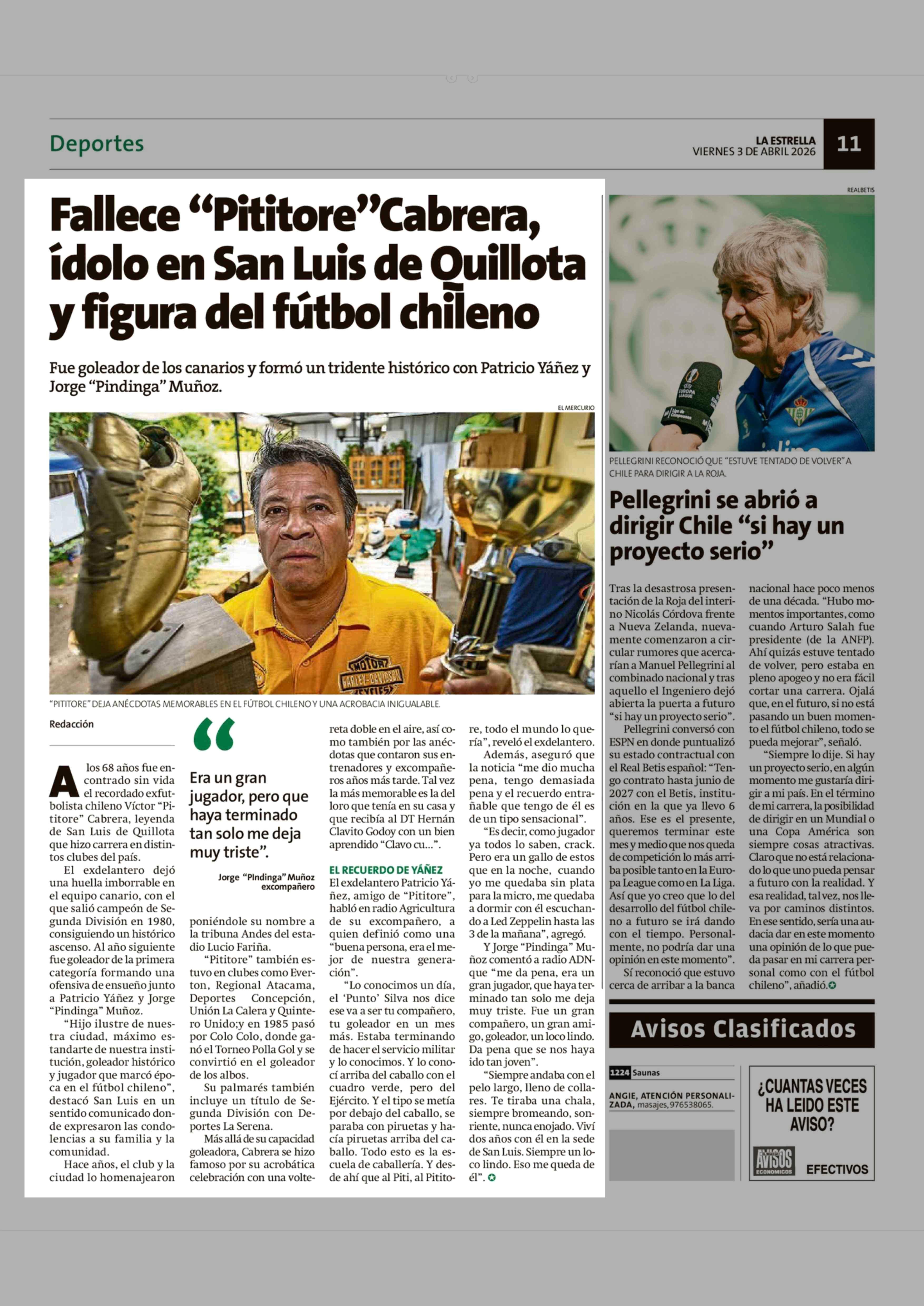 Título: Fallece “Pititore”Cabrera, idolo en San Luís de Quillota y figura del fútbol chileno