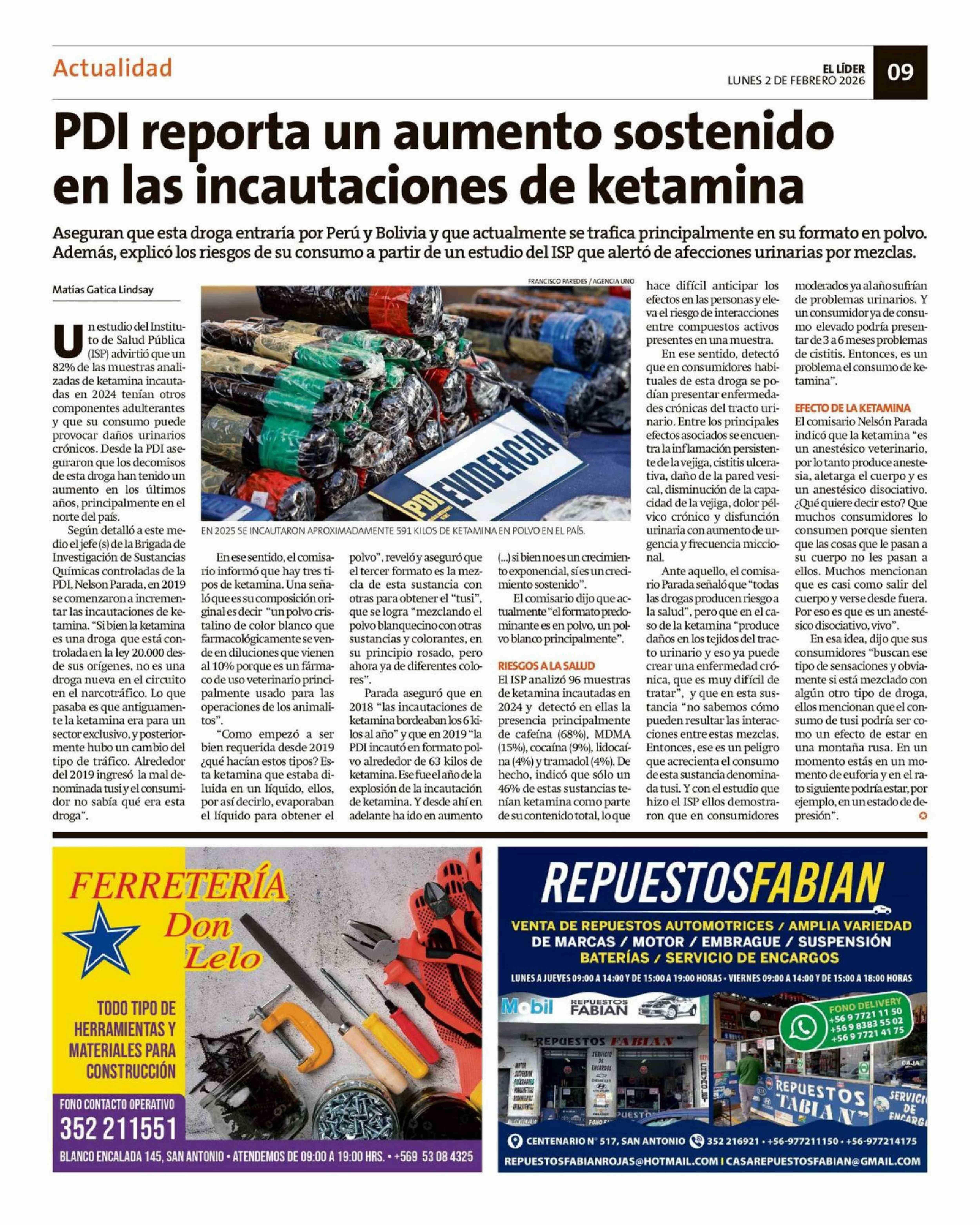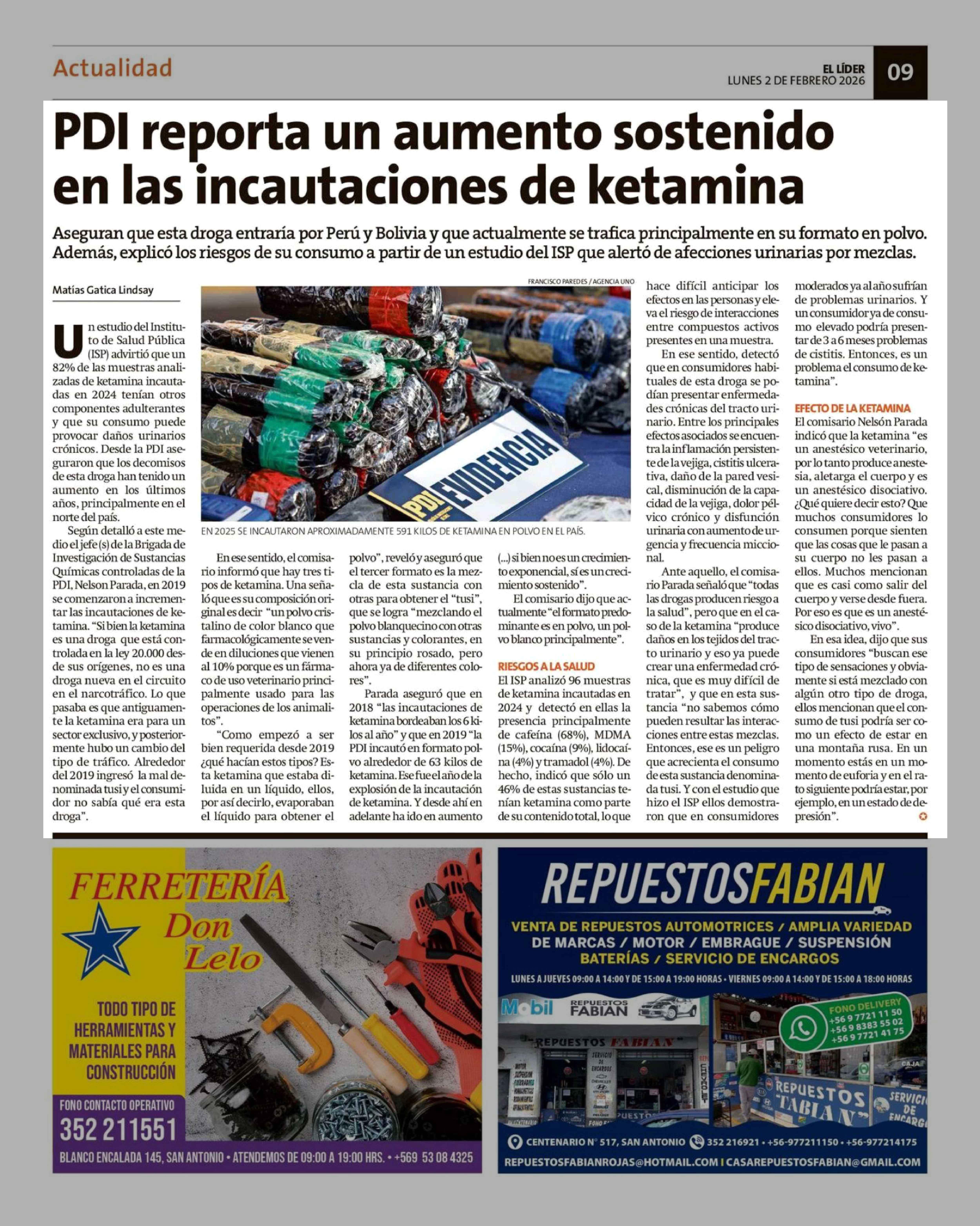 Título: PDI reporta un aumento sostenido en las incautaciones de ketamina