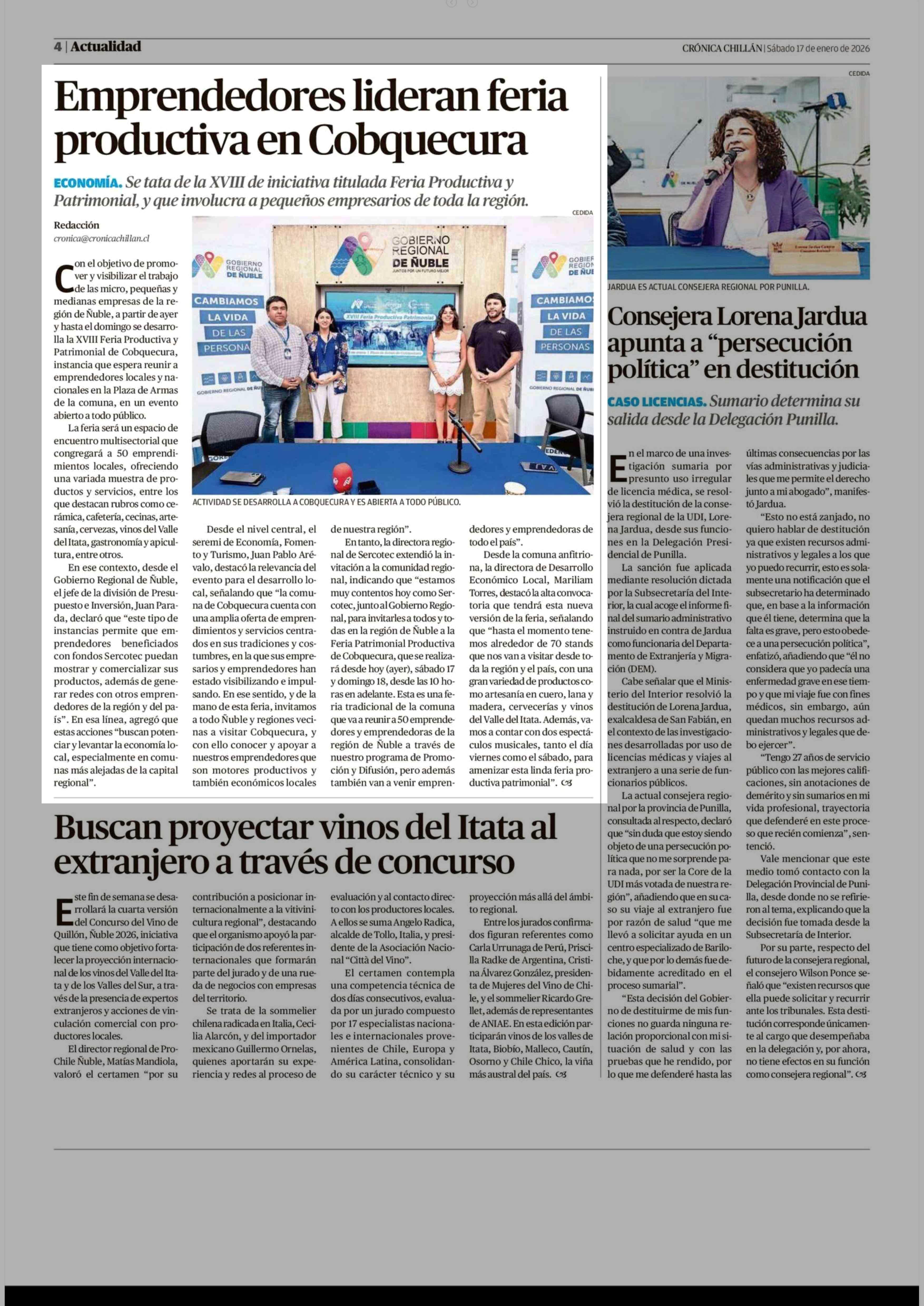 | Fecha: | 17-01-2026 | Sector: | Noticia general | Región: | Región del Ñuble |
