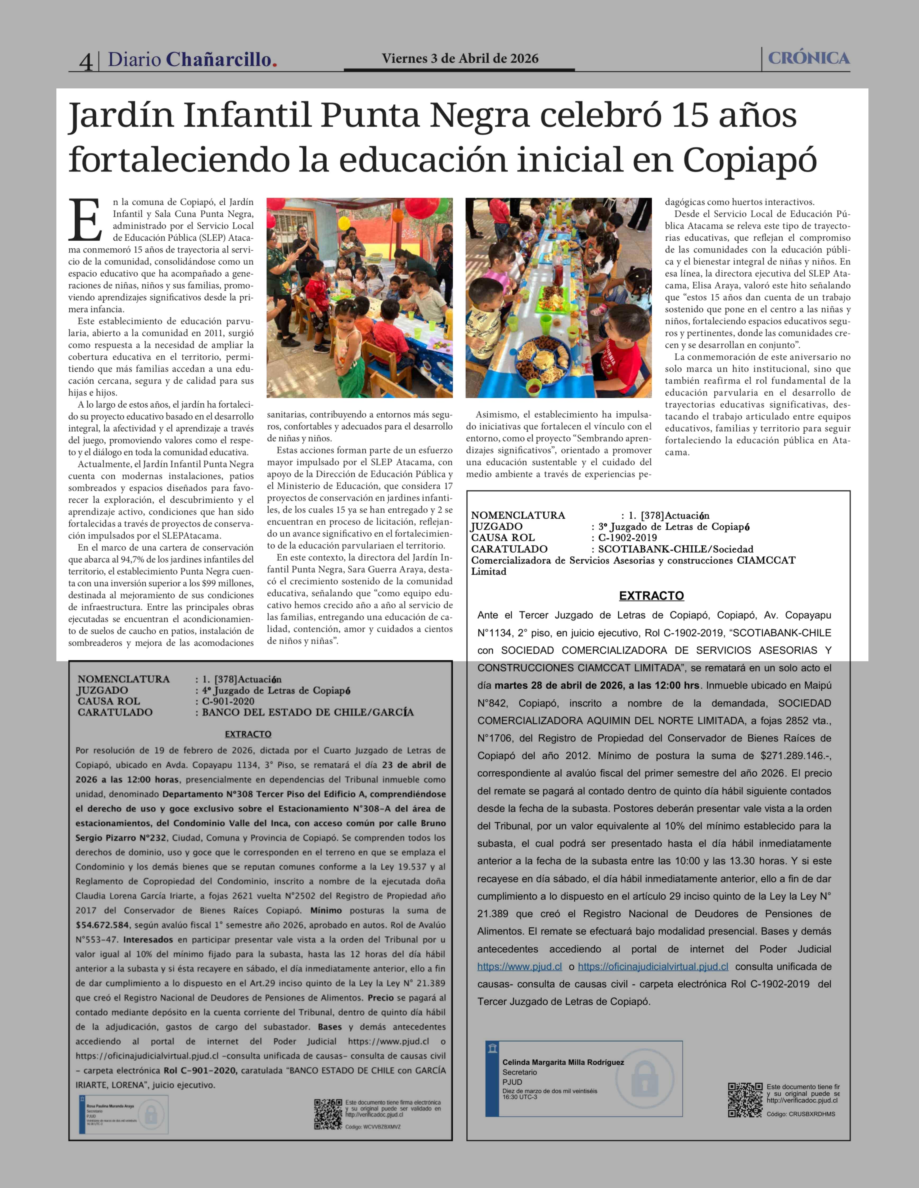 Fecha: 03-04-2026 Sector: Noticia general Región: Región de Atacama