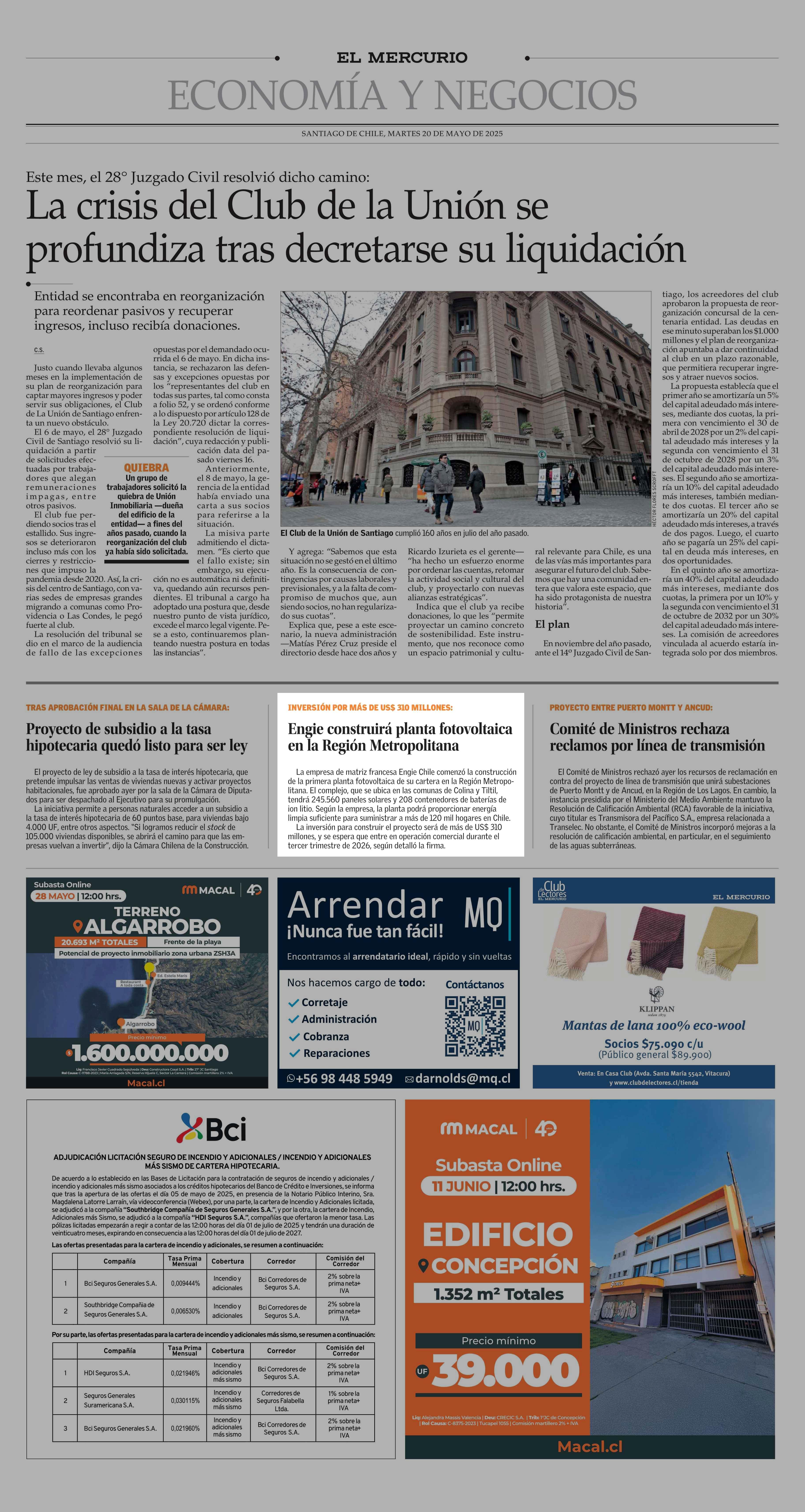 Engie construirá planta fotovoltaica en la Región Metropolitana 20-05-2025 El Mercurio |