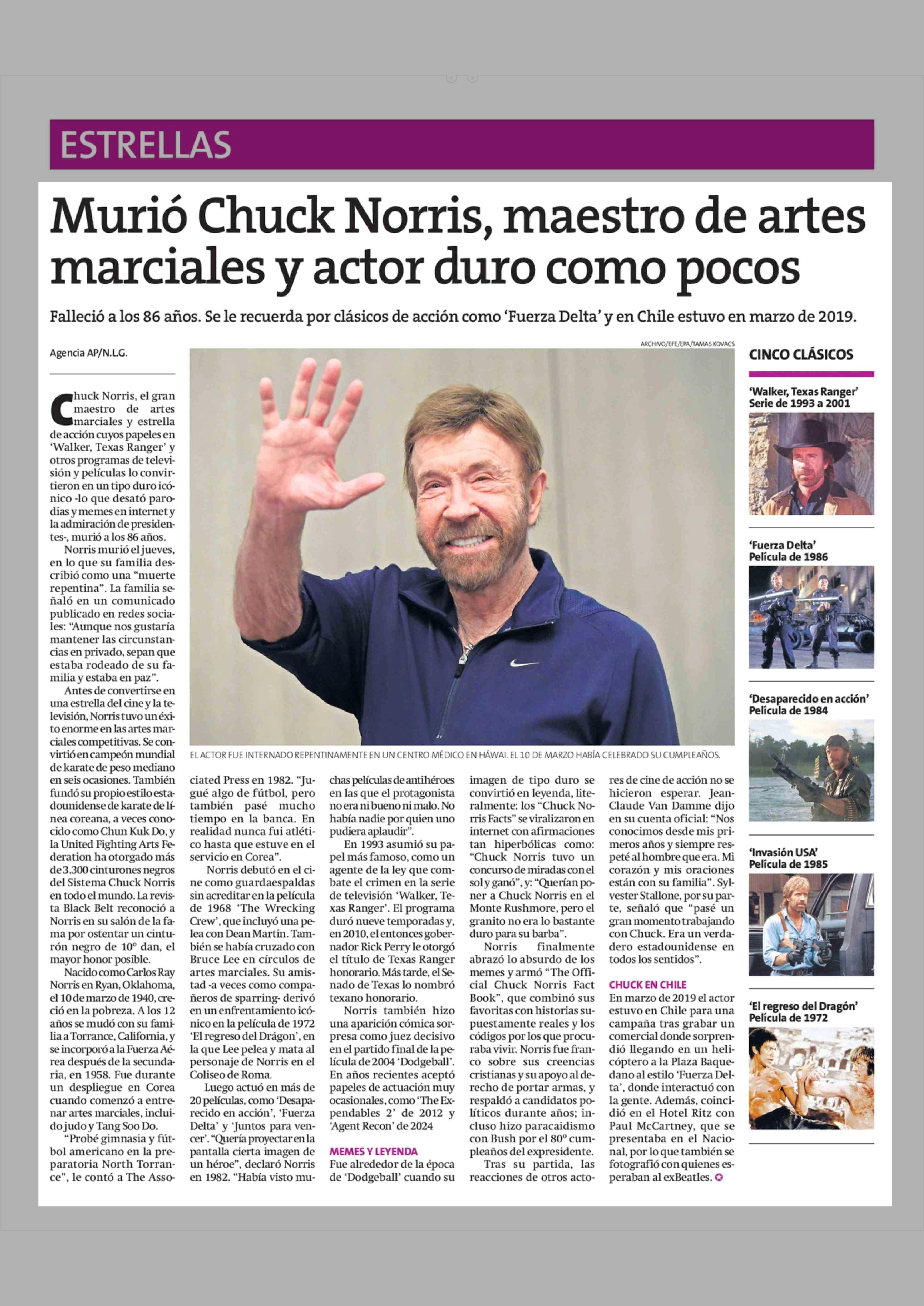 Título: Murió Chuck Norris, maestro de artes marciales y actor duro como pocos