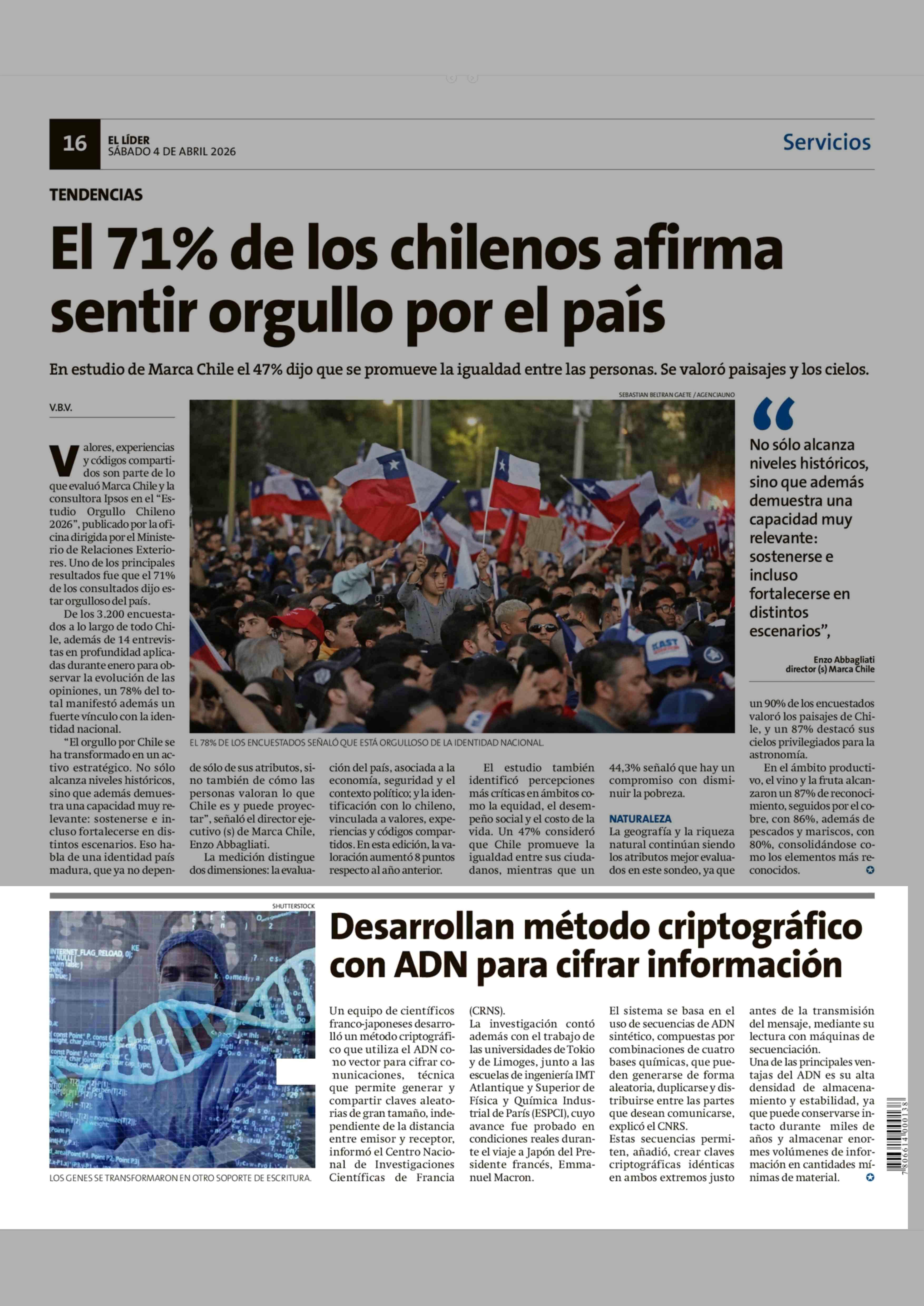 Desarrollan método criptográfico con ADN para cifrar información 04-04-2026 El Líder |