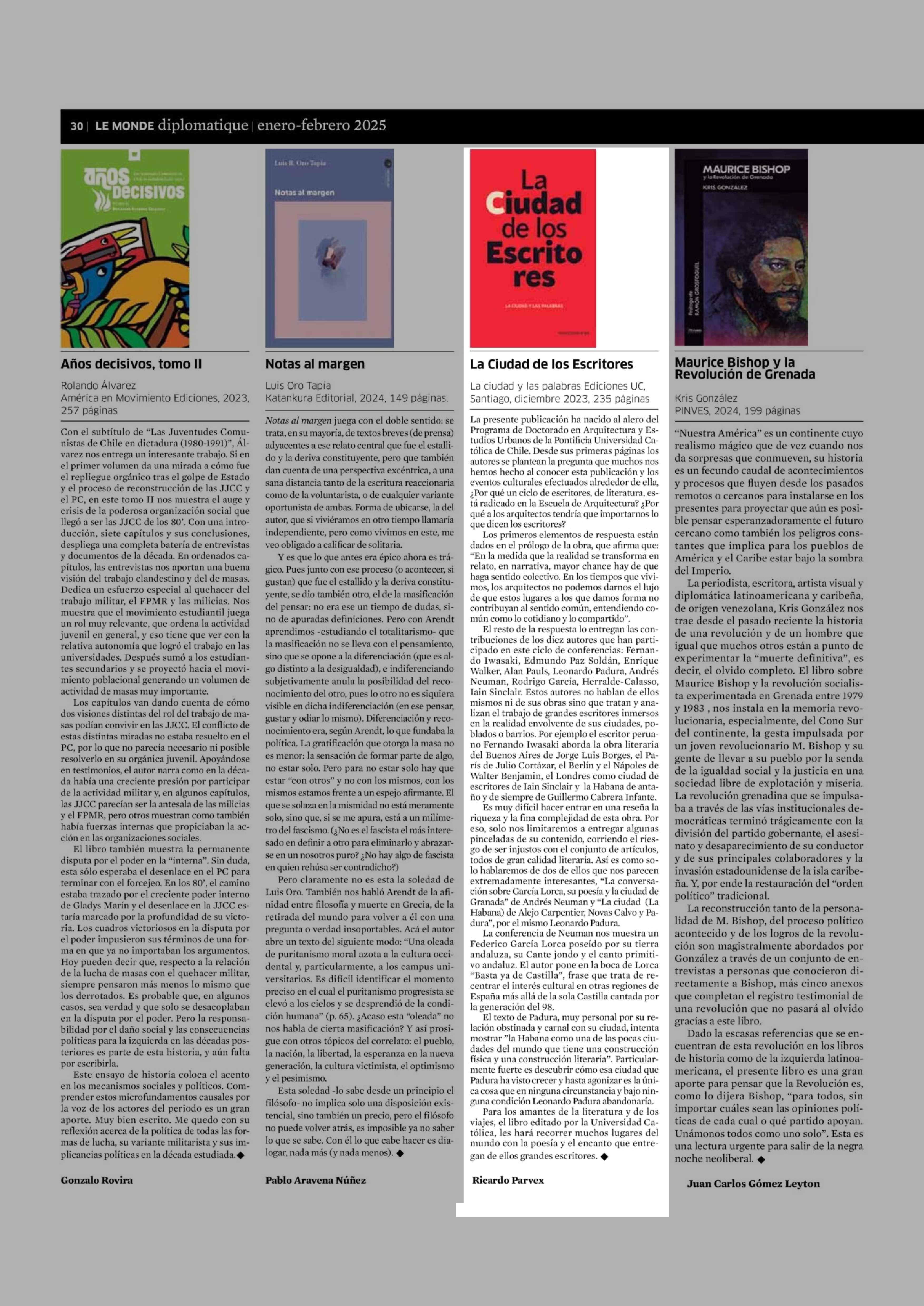 La Ciudad de los Escritores UC. 07-01-2025 Le Monde Diplomatique |